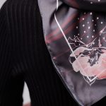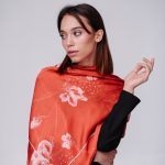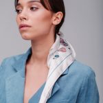 Тканиною для виготовлення хусток був обраний сатин, який характеризується лагідною текстурою та вишуканим блиском. Усі моделі універсальні, що дає можливість для різноманітних комбінацій та способів носіння. Акуратний вузлик навколо шиї, ошатний палантин на плечах, витончена хустка, що невимушено покриває волосся або ж спадає барвистою прикрасою на ремінці сумки та, зрештою, смілива альтернатива на зап’ясті чи джинсах – усі ці стильні варіації стануть влучними акцентами для вашого іміджу.