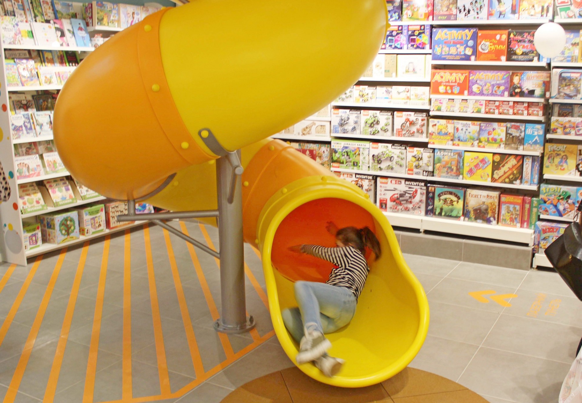 Ідея горки з’явилася під час однієї зі стратегічних сесій і полягала в тому, щоб діти могли спускатися по ній прямо в магазині. Спочатку, за розповідями представника мережі, ніхто і не думав, що це в принципі можливо. Ігровий тунель був лише ще однією ідеєю мозкового штурму. Але в новому приміщенні стелі виявилися достатніми високими, щоб можна було побудувати прибудову. Здійснити задум допомогло також те, що ТРЦ Дафі якраз займається будівництвом нового крила. З результаті заради дитячої горки прямо у магазині добудували ще один поверх з окремою зоною, де дитина може відчути себе господарем на своїй території без дорослих і влаштувати собі екстремальний, але безпечний спуск з майже 5-метрової висоти.