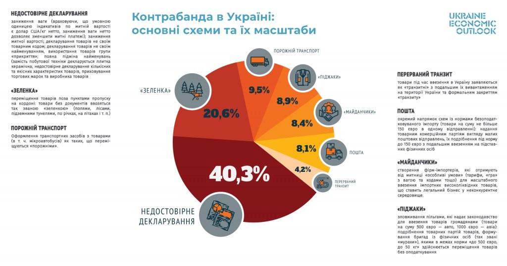 Серед основних схем ввезення, за словами Григорія Кукурудзи, 40,3% припадає на недостовірне декларування. Наприклад, коли йде заниження ваги або вартості партії, декларування за іншими кодами і відверта підміна, коли замість побутової техніки заявляється керамічна плитка. Ще 20,6% припадає на так звану «зеленку», тобто переміщення товару поза пунктами пропуску.