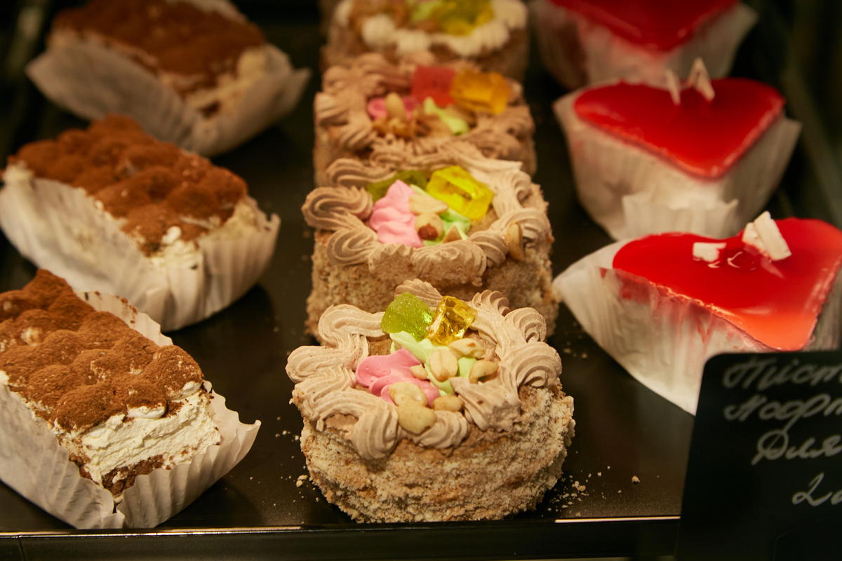 Для любителів солодкого є великий вибір тістечок та тортиків на будь-який смак та гаманець.