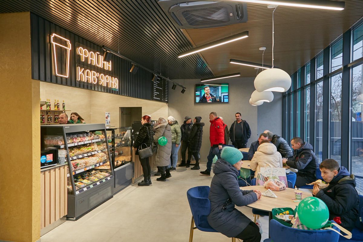 «На етапі створення проєкту будівництва ми приділяли велику увагу ергономіці. Тому зробили магазин не тільки сучасним та красивим, а й комфортним для наших сусідів: починаючи від зручного паркувального майданчику й широких рядів, завершуючи стелею, що не створює ефекту «важкості» та «нависання». Усе обладнання, котре можна побачити в магазині, закупляли у вітчизняних постачальників. Дотрималися й сучасних стандартів з енергоефективності, що так важливо для нас, з огляду на ситуацію в країні», — розповіли у мережі.