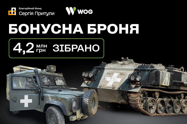 Мережа АЗК WOG разом зі спільнотою PRIDE в межах проекту «Бонусна броня», який реалізовував Фонд Сергія Притули разом із українськими рітейлерами, зібрали 4,2 млн грн. Кошти спрямували на закупівлю евакуаційного гусеничного бронетранспортера FV-432 та евакуаційного Snatch Land Rover для Сил Оборони України.