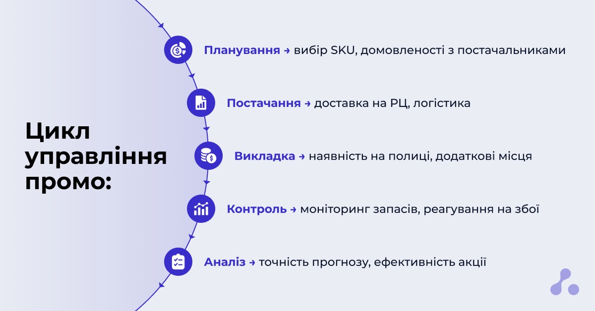 Модель прогнозування — це серце промо, але вона не працює у відриві. Щоб акції реально приносили прибуток, важливо мати єдиний процес: від планування й постачання до викладки й аналізу результатів. І все це має бути об’єднано в одному рішенні.