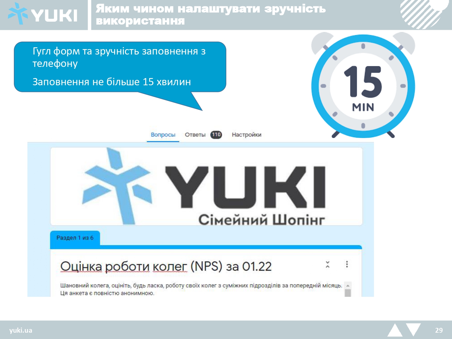 HRD мережі магазинів YUKI розповіла про вплив результатів внутрішньої клієнтоорієнтованості на мотивацію персоналу, метод обчислення внутрішнього NPS та CSI за допомогою оцінки суб’єктивних та об’єктивних факторів та пояснила, як працює зворотний зв’язок і яким чином підвищується ефективність процесів.