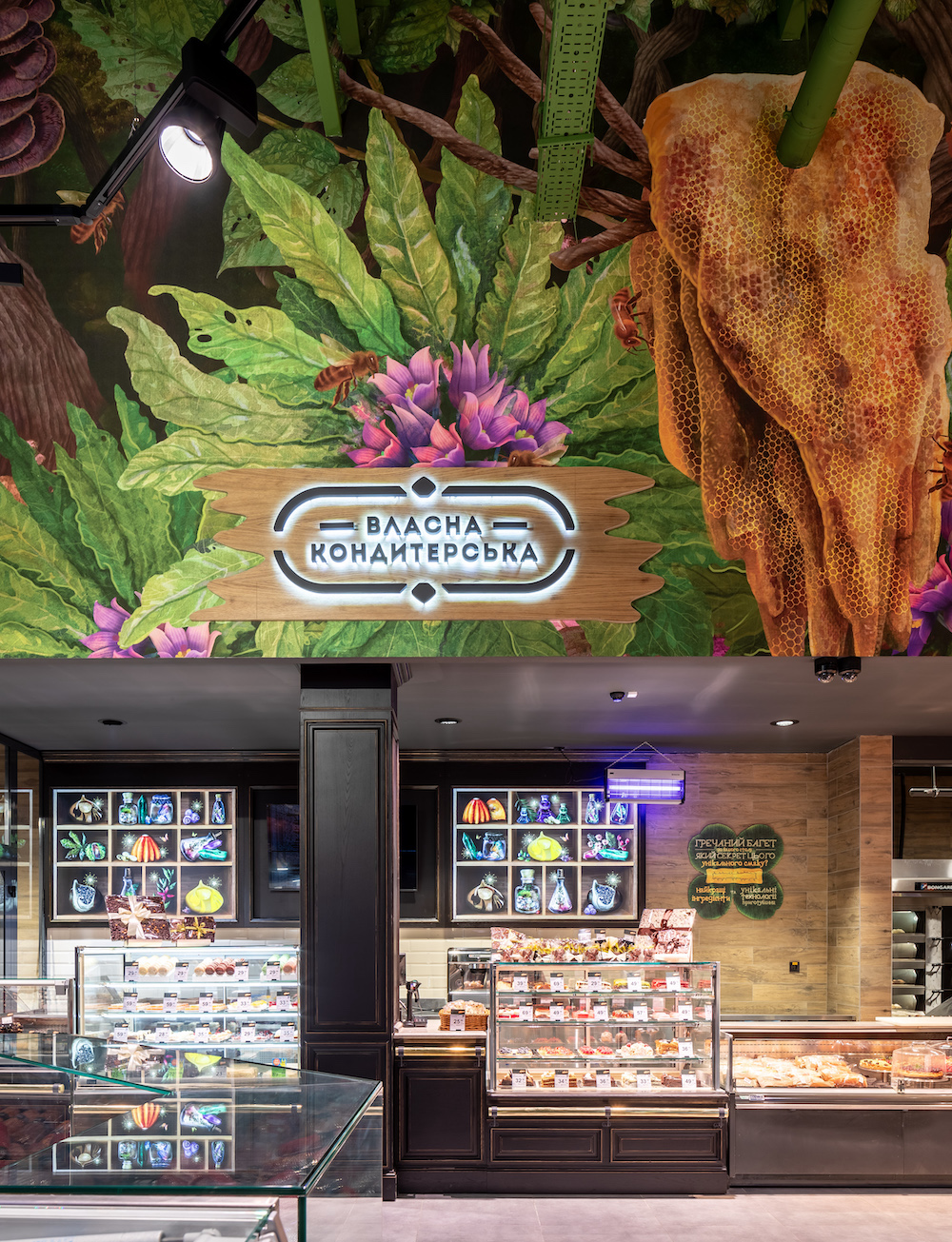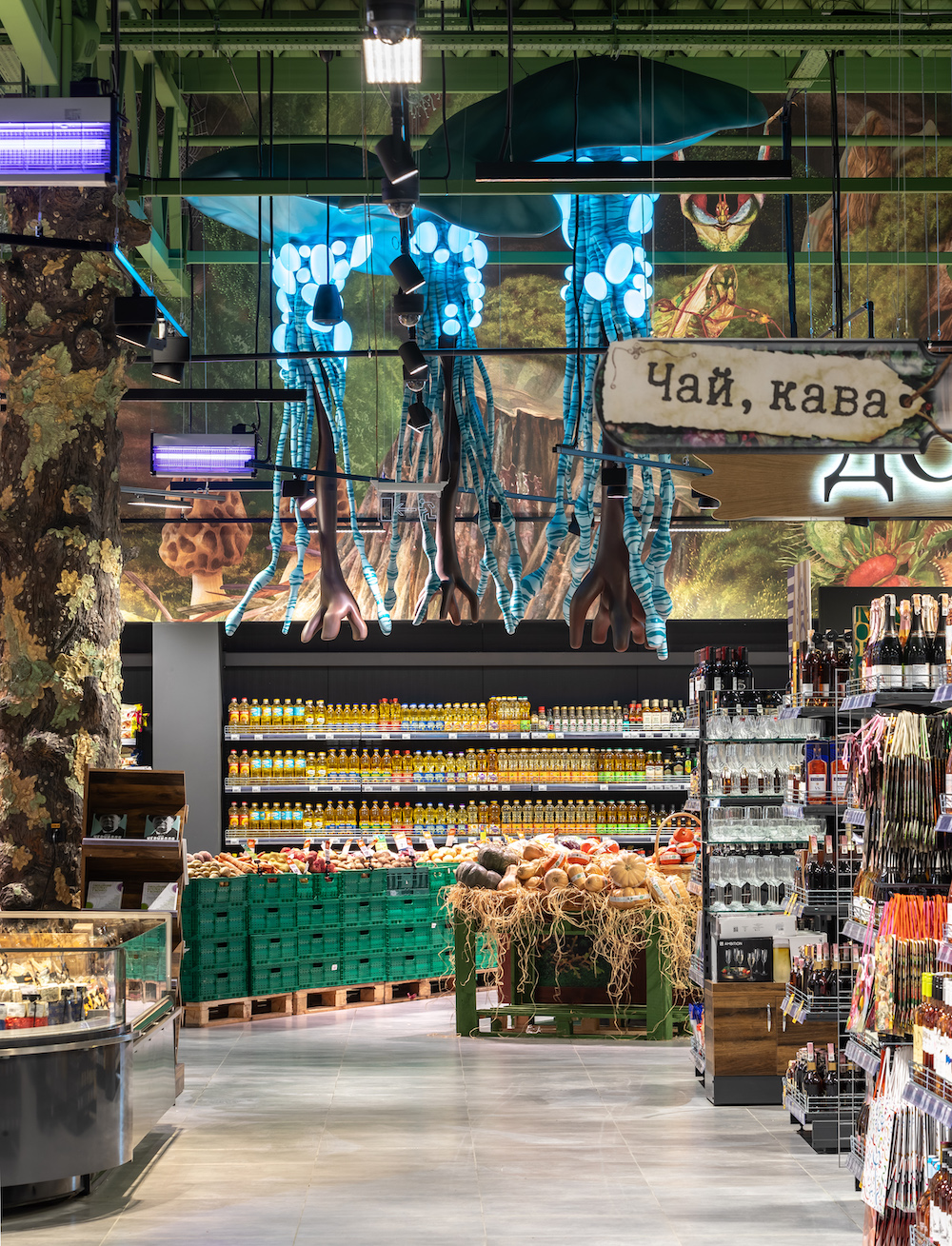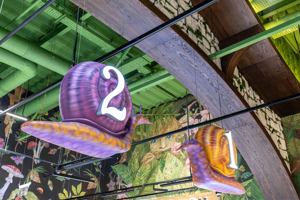 Щоб розгледіти містичних лісових істот, інтер’єр торгового залу загальною площею 1500 кв. м оформлено в природному стилі ― деревина, зелені відтінки та рослини. На шпалерах ілюстрована історія про гобліна «хранителя лісу», а колони оформлені у вигляді дерев та декоровані мохом.