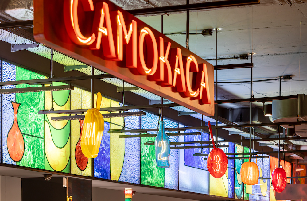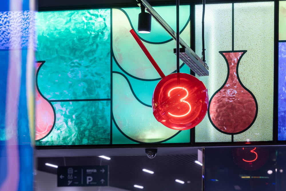 Цей супермаркет мережі Сільпо став осередком мистецтва склодувів, аби під час походу за смачненьким гостей супроводжувала гра кольорів та світла. Знайомство починається з грайливих полисків світла у вітражі на вході.