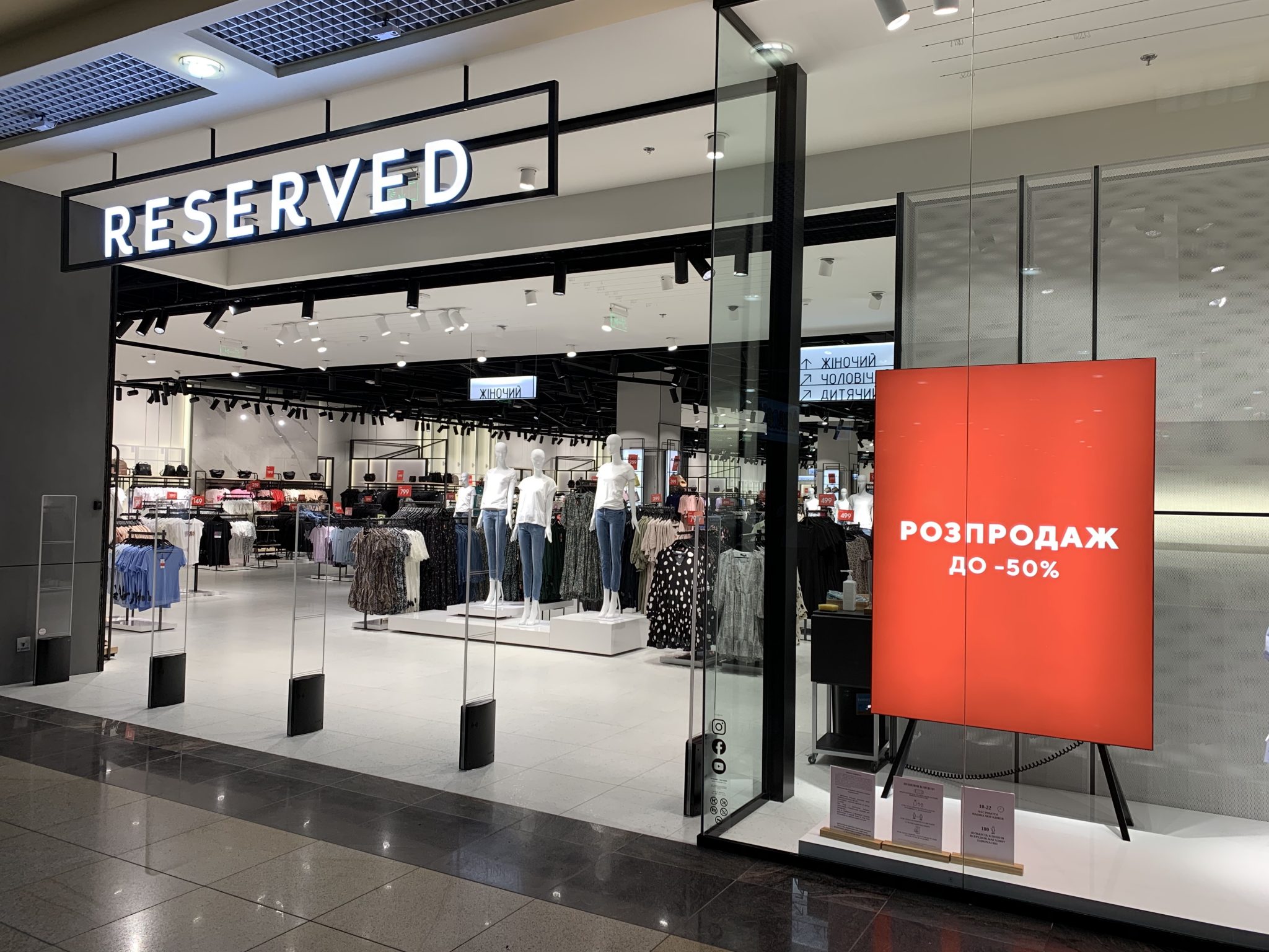 Підвищену увагу в Reserved приділили безпеці клієнтів у період епідемії коронавірусу. У магазині постійно дезінфікують поверхні, на вході доступні антисептики і одноразові рукавички, а відвідувачів постійно повідомляють про необхідність дотримання безпечної дистанції.