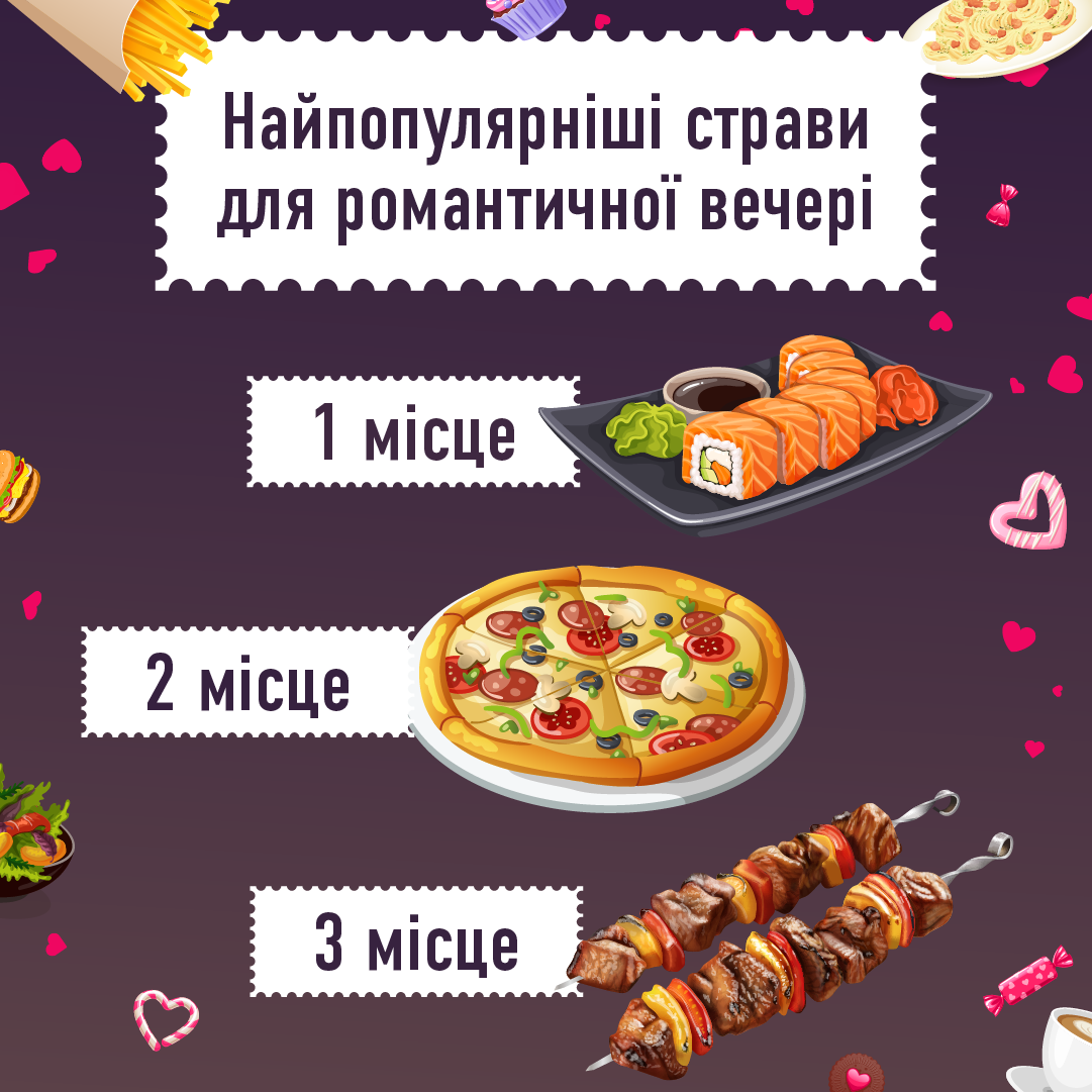 Найпопулярніші романтичні страви – суші, піца і шашлик – опитування