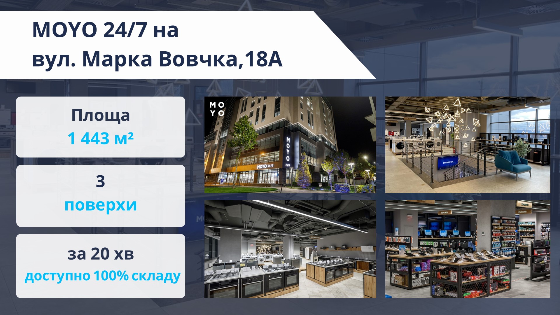Мережа Moyo працює на ринку України 15 років, налічує 91 магазин (найбільша концентрація в центральному регіоні та столиці) в 49 населених пунктах України та має два унікальних формати в Києві та Львові, які до великої війни працювали цілодобово. Їх відмінність від інших магазинів в тому, що в наявності є всі товари, які представлені на сайті. У повномасштабне вторгнення компанія відкриває нові локації на заході країни.