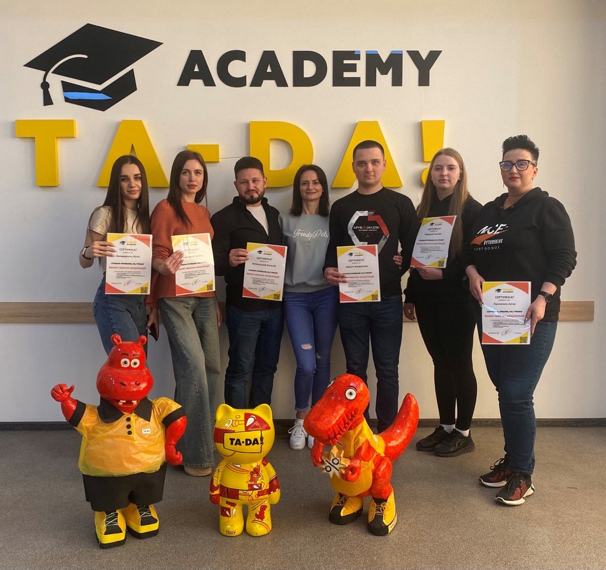 Навчання та розвиток у пріоритеті: в Академії TA-DA! проводяться до 200 тренінгів на рік, де співробітники мають доступ до професійних викладачів та запрошених експертів. І у мережі не зупиняються на досягнутому — вже в планах створення онлайн-платформи для ще більш ефективного навчання.