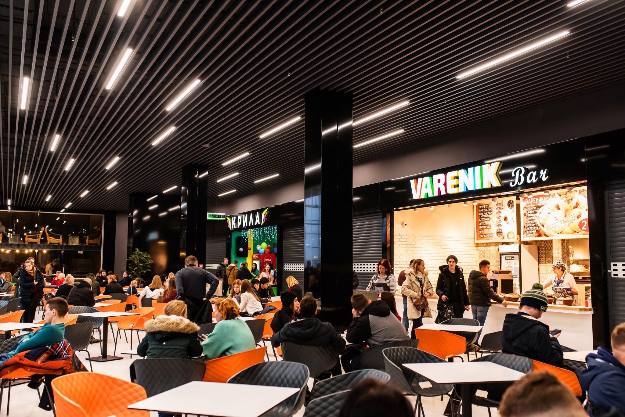 На цьому ж рівні буде знаходитися фудкорт з різноманітними пропозиціями на будь-який смак. Серед орендарів: Mister Cat, Varenik Bar, Крила тощо. Сумарно під фудкорт відведено 1050 кв. м, а кількість посадкових місць 250.