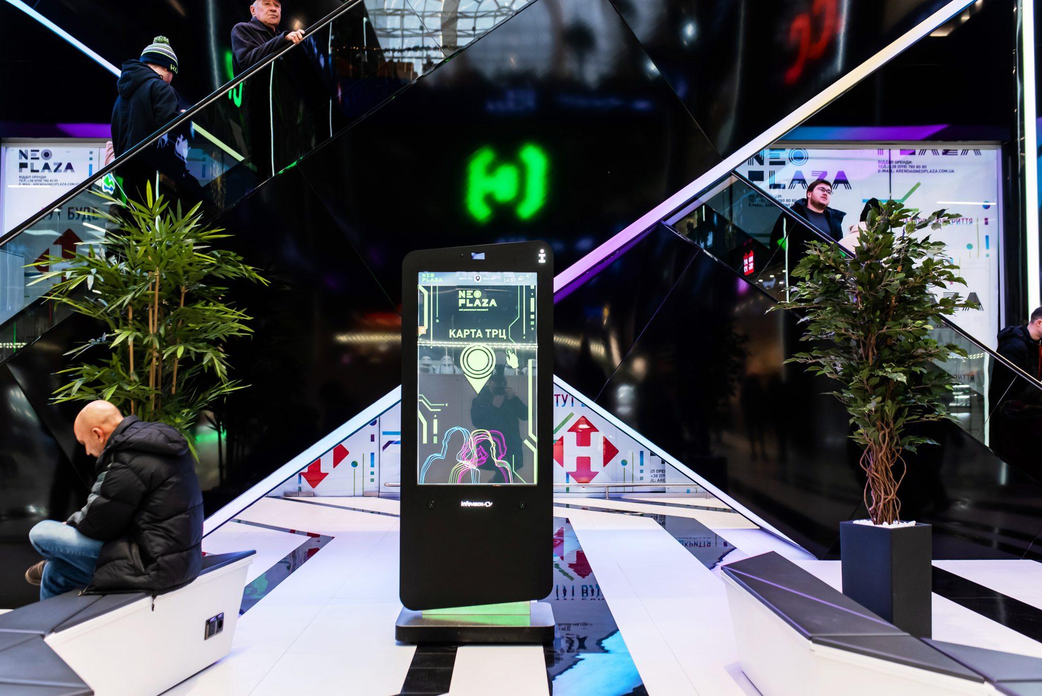 Інтерактивні екрани встановлені й всередині NEO PLAZA. Вони полегшують навігацію по центру, а також інформують відвідувачів про актуальні акції, пропозиції, нові колекції і так далі.