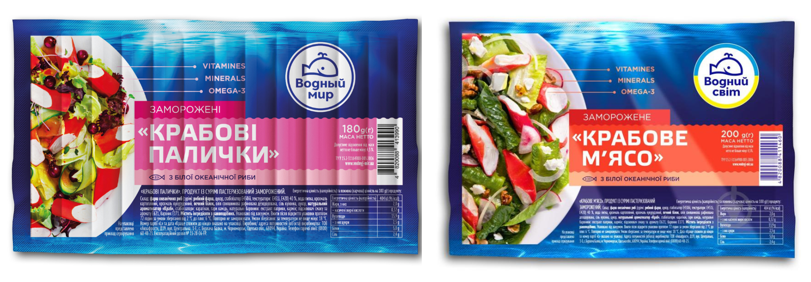 Крабові палички «Водний світ». Єдиний в Україні виробник крабових паличок провів патріотичний ребрендинг і залишив у минулому стару російськомовну назву. Компанію заснували понад 20 років тому в Одесі. На початку свого старту вона була регіональна і бренд орієнтувався на мешканців Одеси та області, які тоді були здебільшого російськомовні. Після початку війни «Водний світ» запустив нову рекламну кампанію бренду під назвою «Мій світ, осяяний світлом мирних часів» та заявив про нову місію бренду: не тільки забезпечувати споживачів широким асортиментом морепродуктів, але й допомагати ЗСУ.