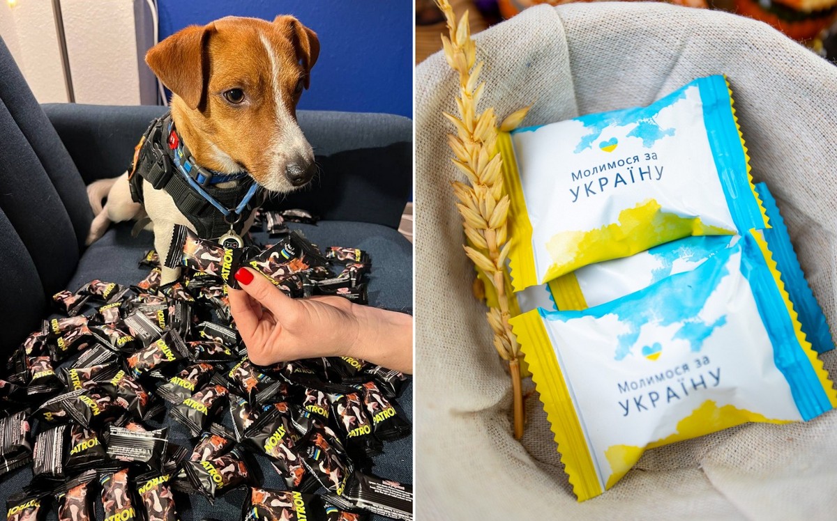 Цукерки «Пес Патрон». Кондитерська фабрика LUKAS почала випускати цукерки подібні до вже популярних смаколиків цього виробника — цукерок «Тузя», однак присвятивши назву героїчному песику Патрону та зобразивши його на обгортці. З початком повномасштабної війни Патрон став найвідомішою собакою країни. Він має державну нагороду, власну сторінку в соцмережах та вишиванку. Відтепер його ім’ям ще й увінчали грильяжні цукерки з соняшникового насіння у шоколадній глазурі. Крім цукерок з Патроном, на полицях рітейлерів можна знайти нові ласощі від LUKAS з ніжного суфле у шоколаді «Лукася» в патріотичному пакуванні. На синьо-жовтих обгортках зробили написи «Молимося за Україну», «Бережіть себе і Україну», «Україна понад усе», «Все буде Україна».