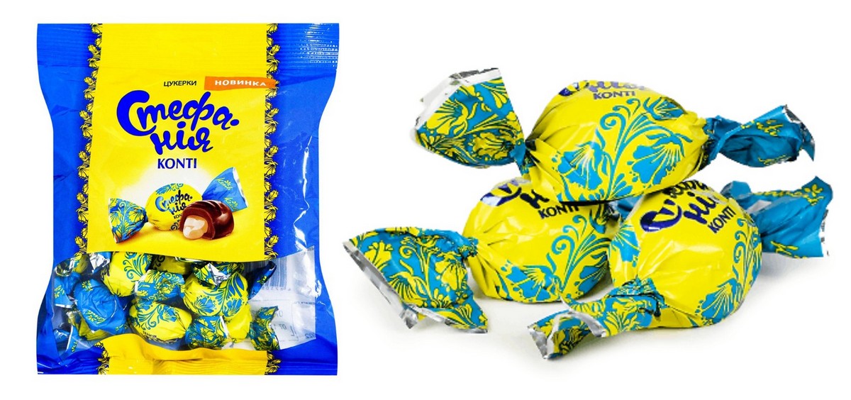 Цукерки «Стефанія». Минулого року кондитерська фабрика Конті випустила цукерку «Стефанія» на честь пісні українського фольк-реп гурту Kalush Orchestra, з якою гурт переміг на конкурсі Євробачення-2022. Це помадна цукерка з додаванням коньяку та желейної начинки з какао. Дизайн упаковки виконано в патріотичних жовто-блакитних кольорах.