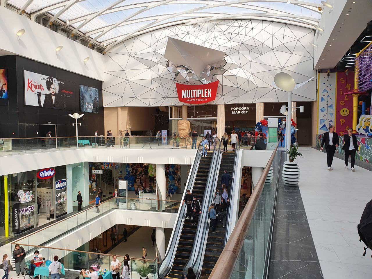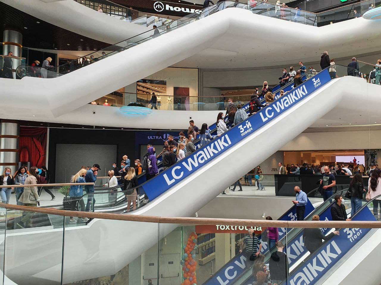 Між п’ятьмя рівнями торгово-розважального центру, якщо рахувати із мінус першим поверхом, встановили 28 ескалаторів і 14 ліфтів. Біля них влаштували розважальну програму з музикантами, розіграшами та аніматорами.