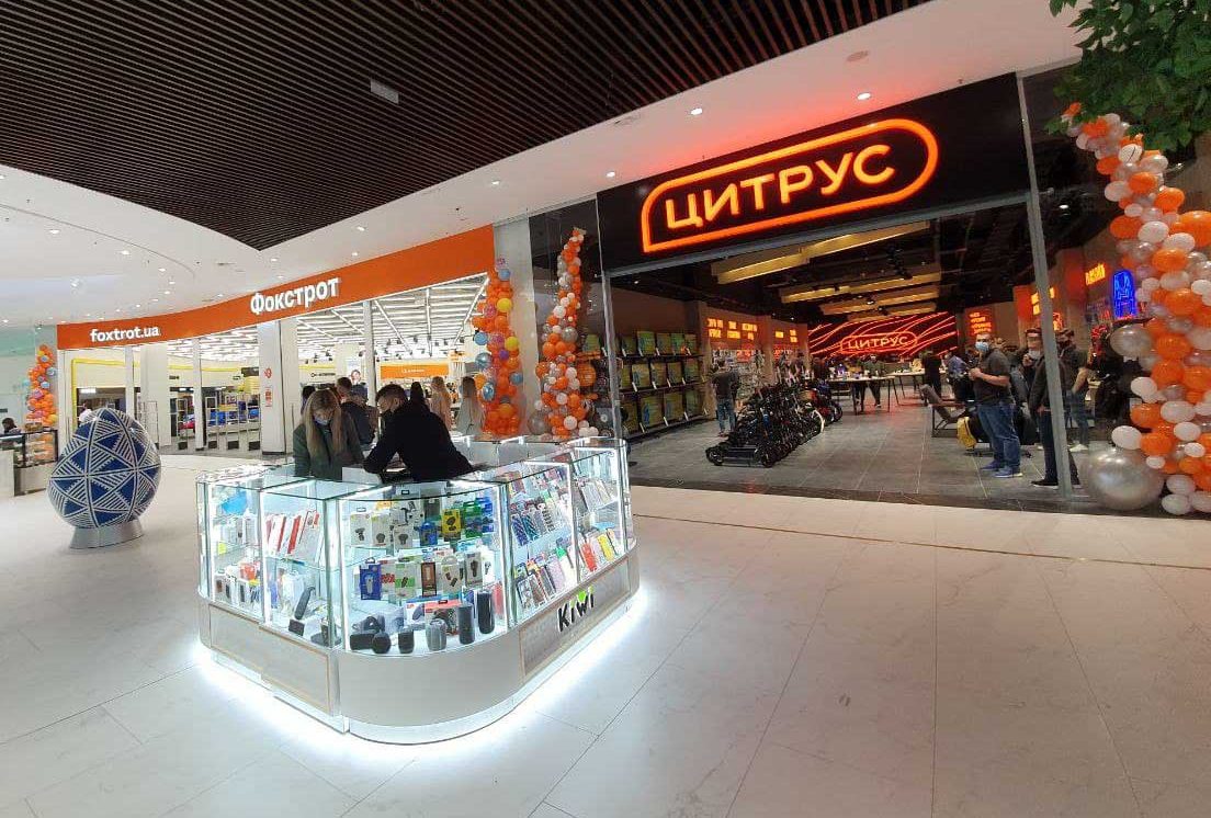 Одним з перших відкритих магазинів техніки та електроніки в новому харківському ТРЦ став Фокстрот площею 1700 кв. м. Оператор відкрився в форматі за принципом «хабу», що дозволило по максимуму презентувати матричний асортимент рітейлера. Розширена вхідна зона у 18 метрів дозволяє роздивитися магазин, як на долоні. По центру залу в оточенні торгівельних рядів розташувався сервісний хаб, де можна оплатити покупку, отримати інтернет-замовлення і скористатися послугами з налаштування техніки. В магазині налічується близько півсотні бренд-зон. Поряд з ним – магазини Алло та Цитрус.