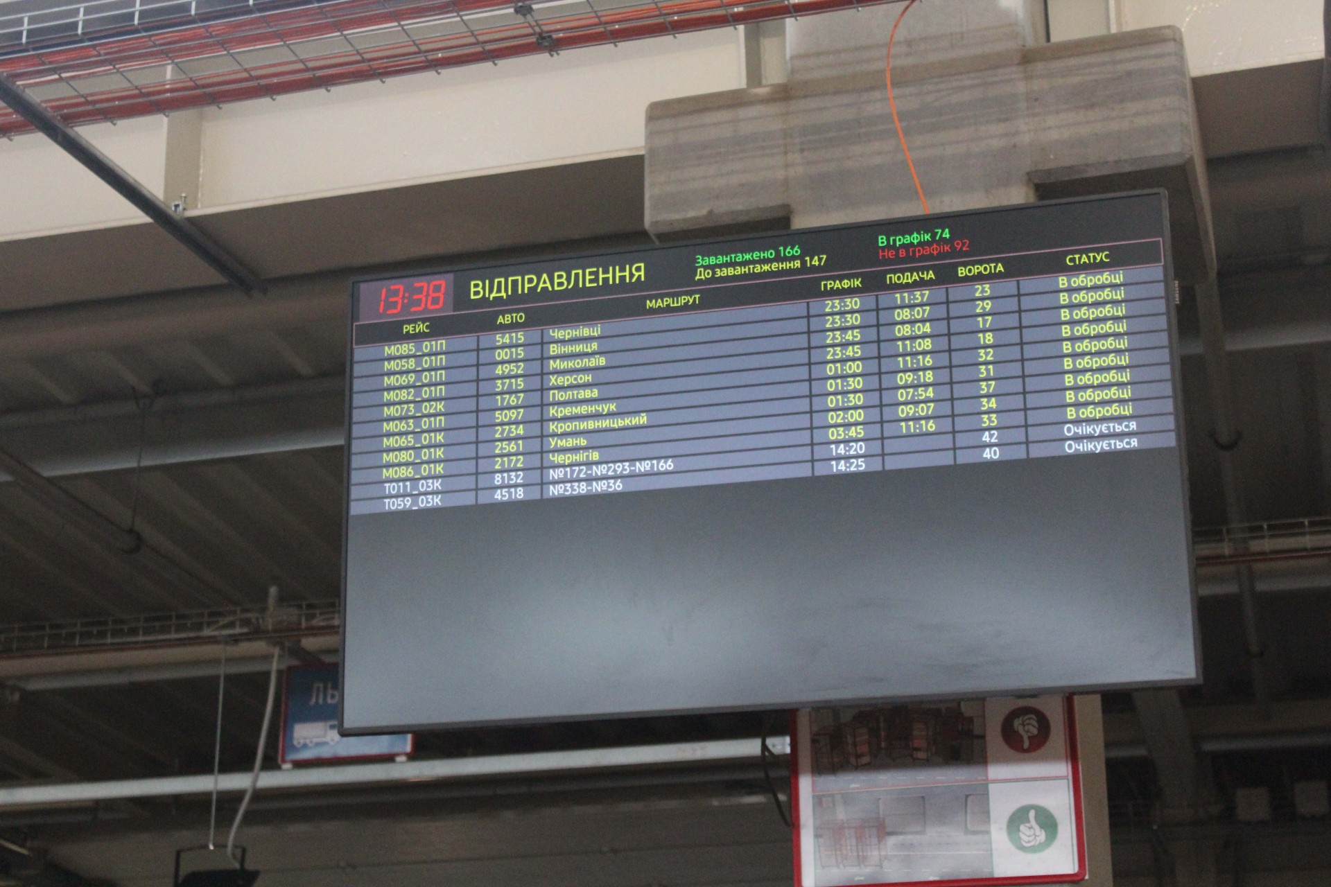 Інформаційне табло зроблено за аналогом “приліт-виліт”. Жовтим кольором відображаються всі рампи, до яких під’їхала машина і зараз їх завантаження знаходиться в обробці, білим – очікуються і червоним, якщо з якоїсь дорожньої причини машина затримується.