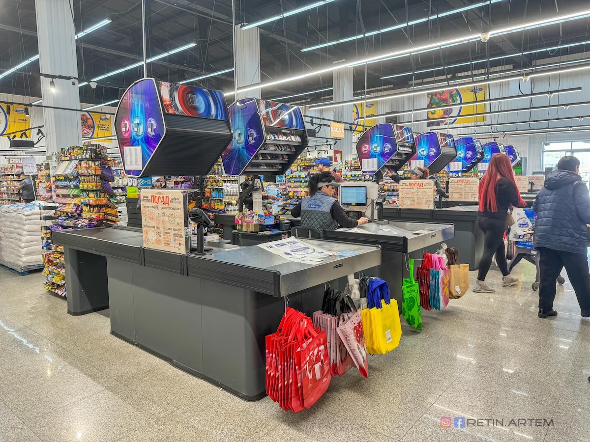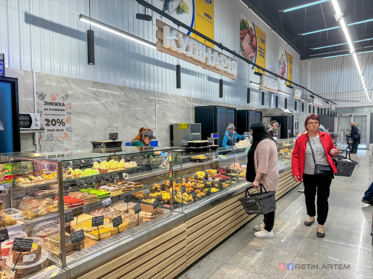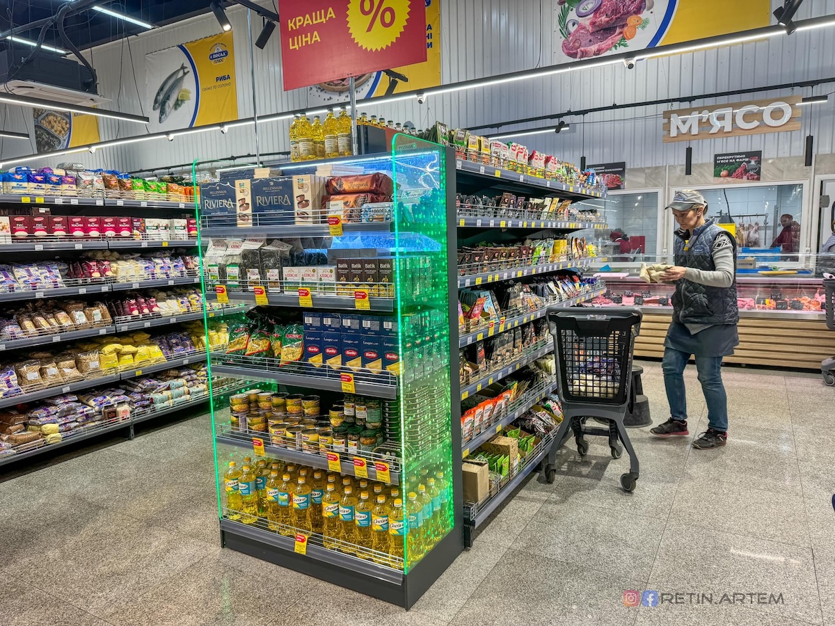 Як зазначає пан Ретін, магазин має трохи архаїчну навігацію з назвами груп товарів у вигляді ПВХ-бордів та оздоблення стін «вагонкою». “Розумію, що проєкт тестовий, а у країні війна, але ці дрібниці псують загальне враження від нового формату, який на сьогодні, є флагманом мережі”, – зауважує Артем Ретін.