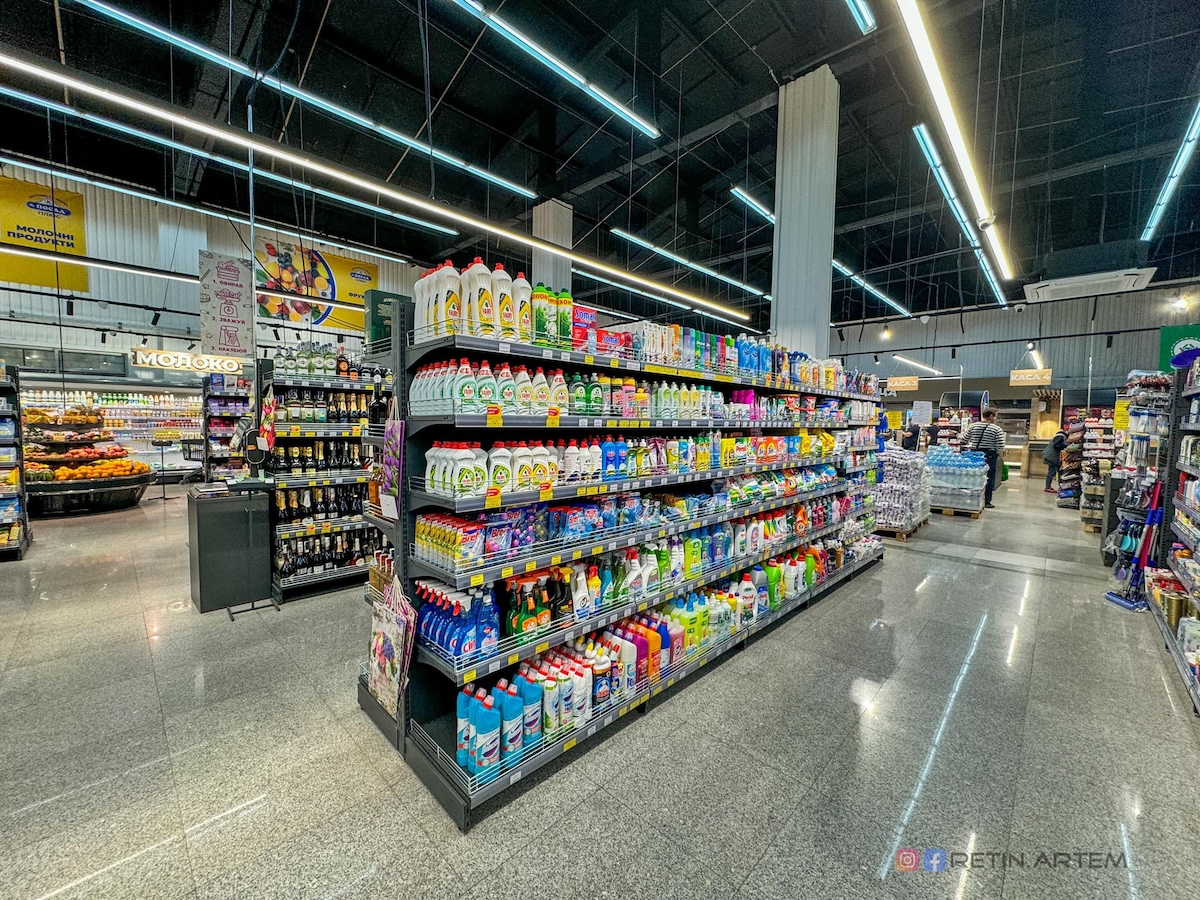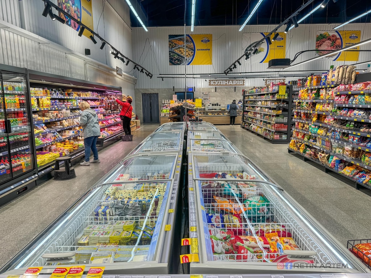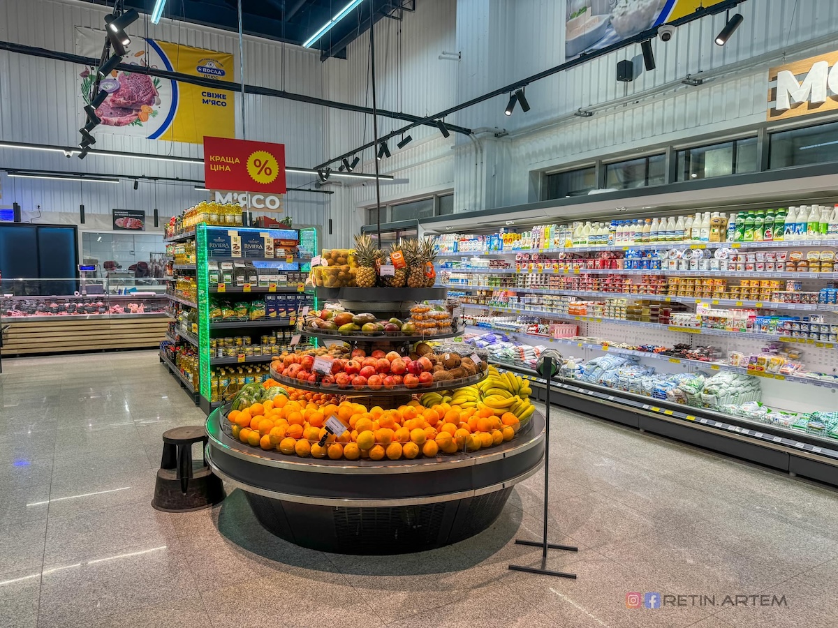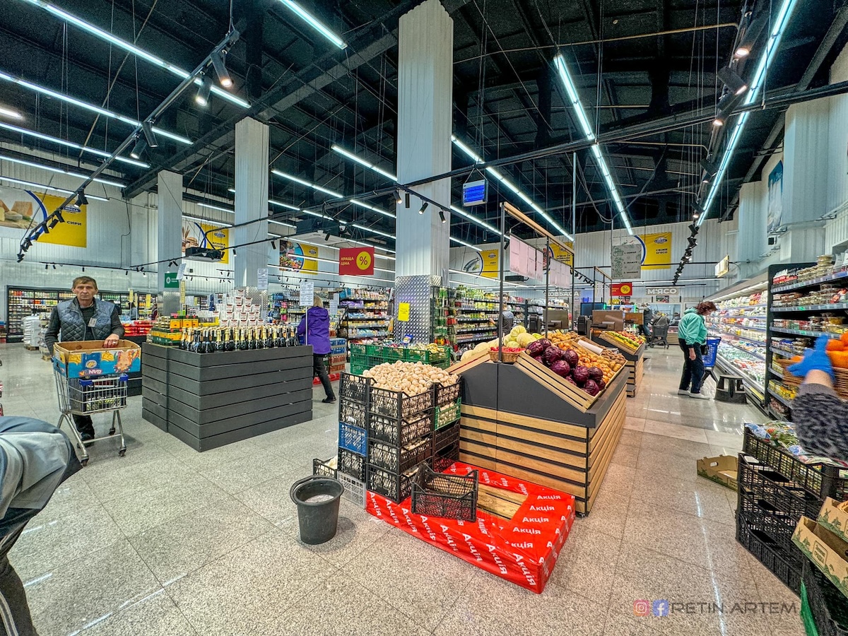 Як зазначає пан Ретін, магазин має трохи архаїчну навігацію з назвами груп товарів у вигляді ПВХ-бордів та оздоблення стін «вагонкою». “Розумію, що проєкт тестовий, а у країні війна, але ці дрібниці псують загальне враження від нового формату, який на сьогодні, є флагманом мережі”, – зауважує Артем Ретін.
