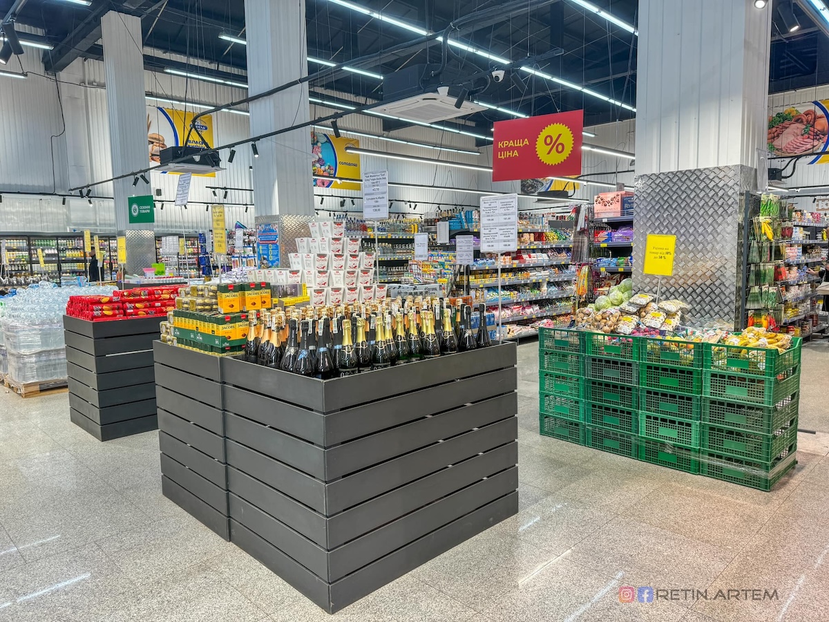 Цей супермаркет має цікавий дизайн. Більшість торгового обладнання нового магазину виконане компанією Modern Expo, але касові блоки є новинкою на ринку. На думку Артема Ретіна, усе має доволі сучасний та функціональний вид, але палети з товаром виглядають якось чужорідно.