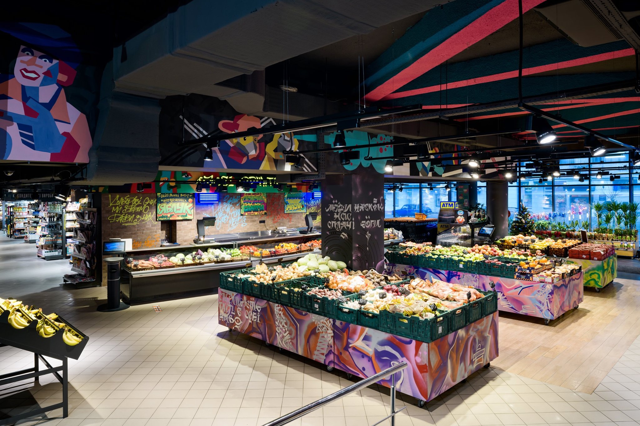 Не обійдеться й без легендарної пекарні — крім випікання хліба в подовій печі, тут готують ще й пироги. «Власна кондитерська» пропонує ексклюзивні цукерки від міжнародних шоколатьє та може прийняти індивідуальне замовлення. До супермаркету можна зайти і просто, щоб порефлексувати за філіжанкою фільтр-кави у FEELtrd. Усе відкрито з 08:00 до 23:00 щодня.