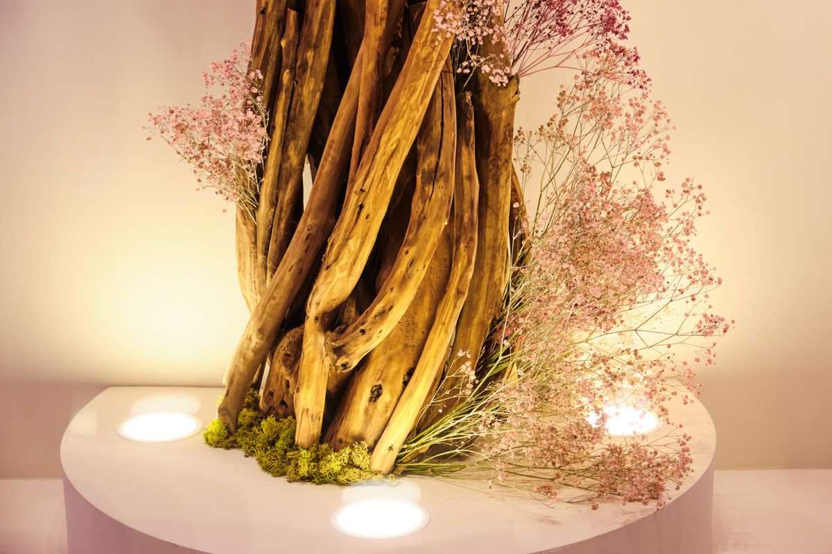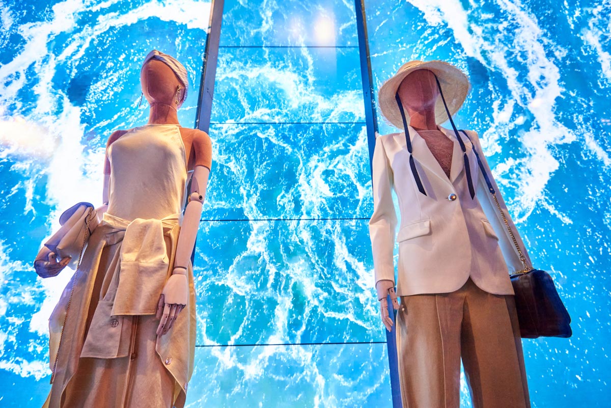 У першій вітрині за допомогою оптичної ілюзії створений ефект туману. Джерелами натхнення другої вітрини стали різноманіття візерунку каменю та палітра натуральних кольорів. Захоплення стихією повітря та безмежна краса неба на світанку об’єднані в третій вітрині. У четвертій вітрині відтворена архітектурна форма у поєднанні з флористичними мотивами. Завдяки гіпнотичному ефекту, який створюється за допомогою циклічного відео на екранах п’ятої вітрини, кожен зможе переосмислити водну стихію, її могутність та важливість для навколишнього середовища.