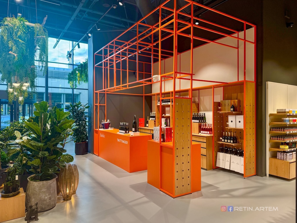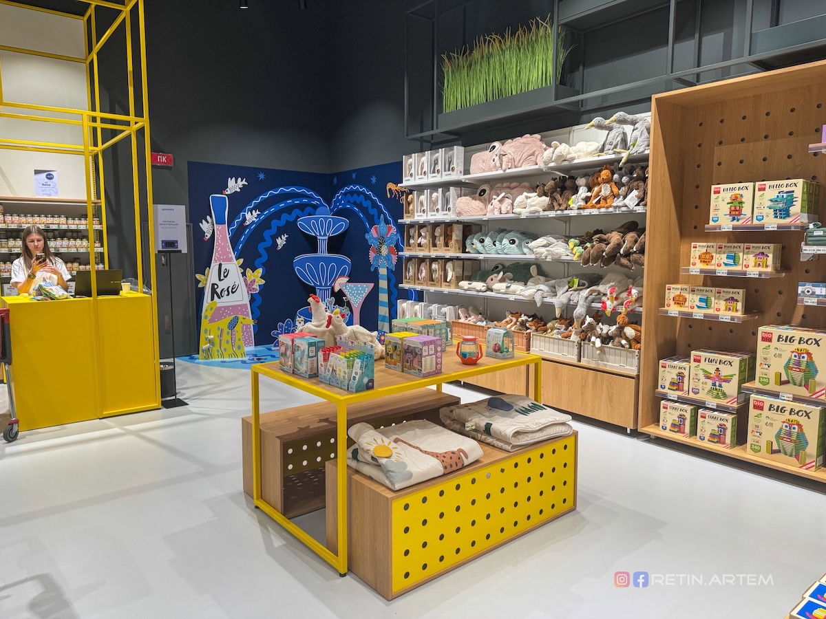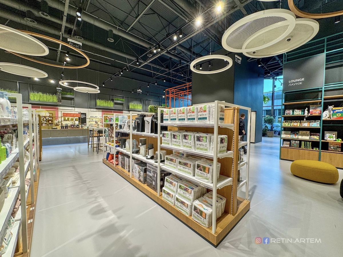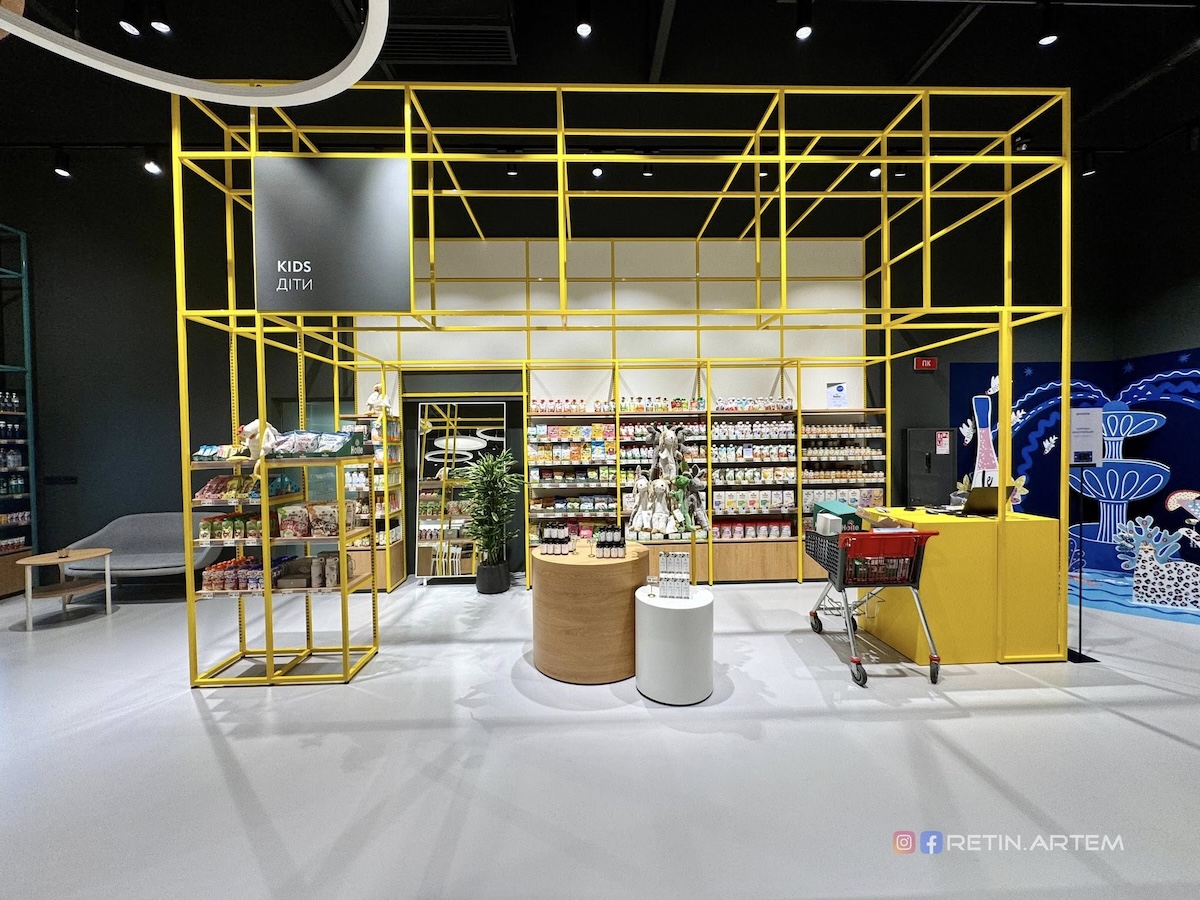 Дизайн магазину — окрема тема, яка заслуговує на увагу. Ще на стадії візуалізацій він привернув увагу своєю нетиповістю для українського ритейлу. У просторі вдало поєднані бетон, дерево, метал і текстиль, що створює баланс між функціональністю та естетикою.