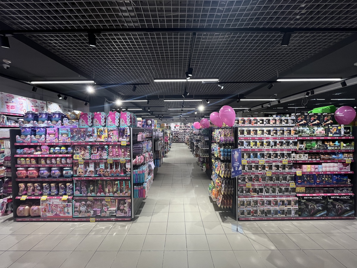 Асортимент магазину, який замймає площу 254 кв. м, має понад 7000 товарів, серед яких улюблені бренди дітей з усього світу: Lego, L.O.L. Surprise!, Paw Patrol, Hasbro, Barbie, Hot Wheels, а також великий вибір якісних іграшок від українських виробників. Кожен знайде щось особливе — від перших іграшок для малюків до крутих гаджетів для підлітків та навіть дорослих.