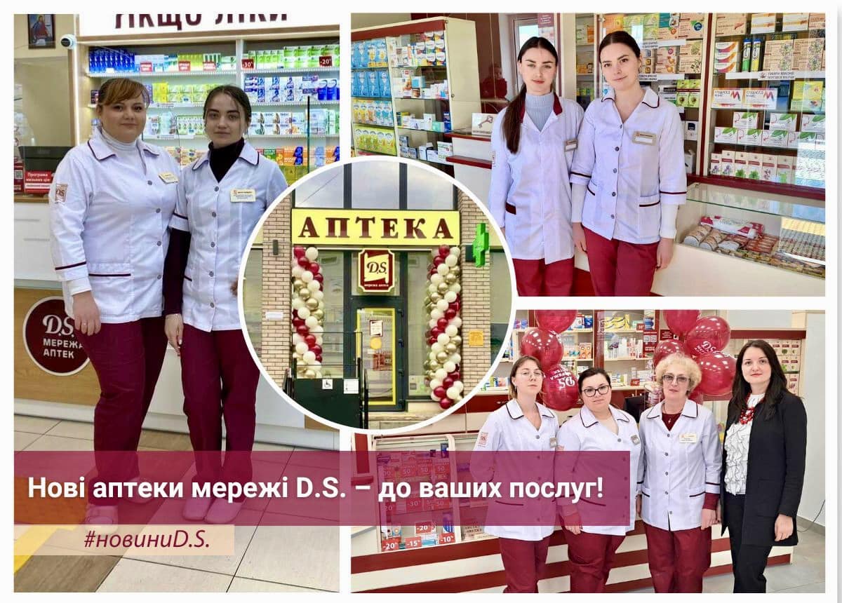 Під брендом D.S. у понад 100 населених пунктах 15-ти областей України працюють майже 400 аптечних закладів. А 10 із них з’явилось за перший квартал 2024 року: два у Тернополі, у Київській області (с. Плоске, м. Бориспіль, м. Українка), на Закарпатті (с. Ракошино), Івано-Франківщині (м. Косів), в Чернівецькій області (Неполоківці, Красноїльськ) і на Хмельниччині (м. Славута).
