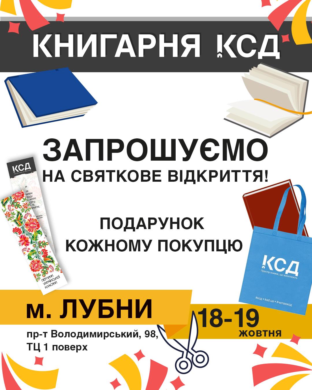 У жовтні святкове відкриття нової книгарні КСД відбулося у місті Лубни (пр-т Володимирський, 98), що на Полтавщині та в Конотопі (пр-т Миру, 9) Сумської області. Так само в жовтні після ремонту відновила роботу книгарня на другому поверсі полтавського ТРЦ Київ (пл. Павленківська, 3).
