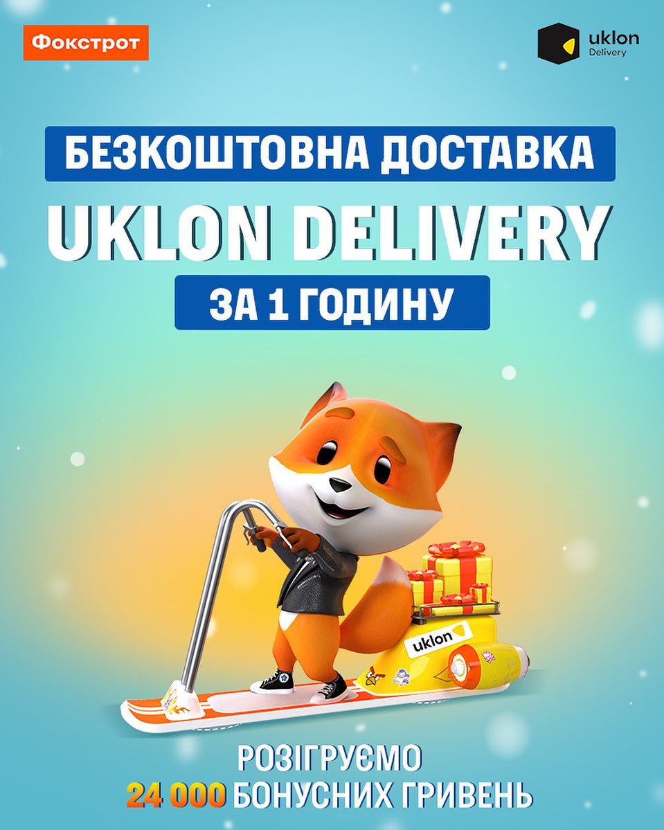 Також Фокстрот разом з Uklon запустили безкоштовну та швидку доставку з магазинів мережі. Uklon Delivery працює в Києві та в компанії планують подальше розширення на 27 міст, серед яких – Львів, Харків, Одеса, Вінниця, Чернігів та ін. За словами представника Фокстрот, Uklon Delivery з перших днів запуску користується попитом серед клієнтів мережі, відвойовуючи частку у наявних видів клієнтської доставки. Продукт вийшов на такі показники: середній час пошуку авто – 12 хвилин; середній час доставки – 26 хвилин. Мінімальна відстань, яку водій здолав для виконання замовлення – 150 м, максимальна –13,6 км, середній чек покупки – 4500 грн.