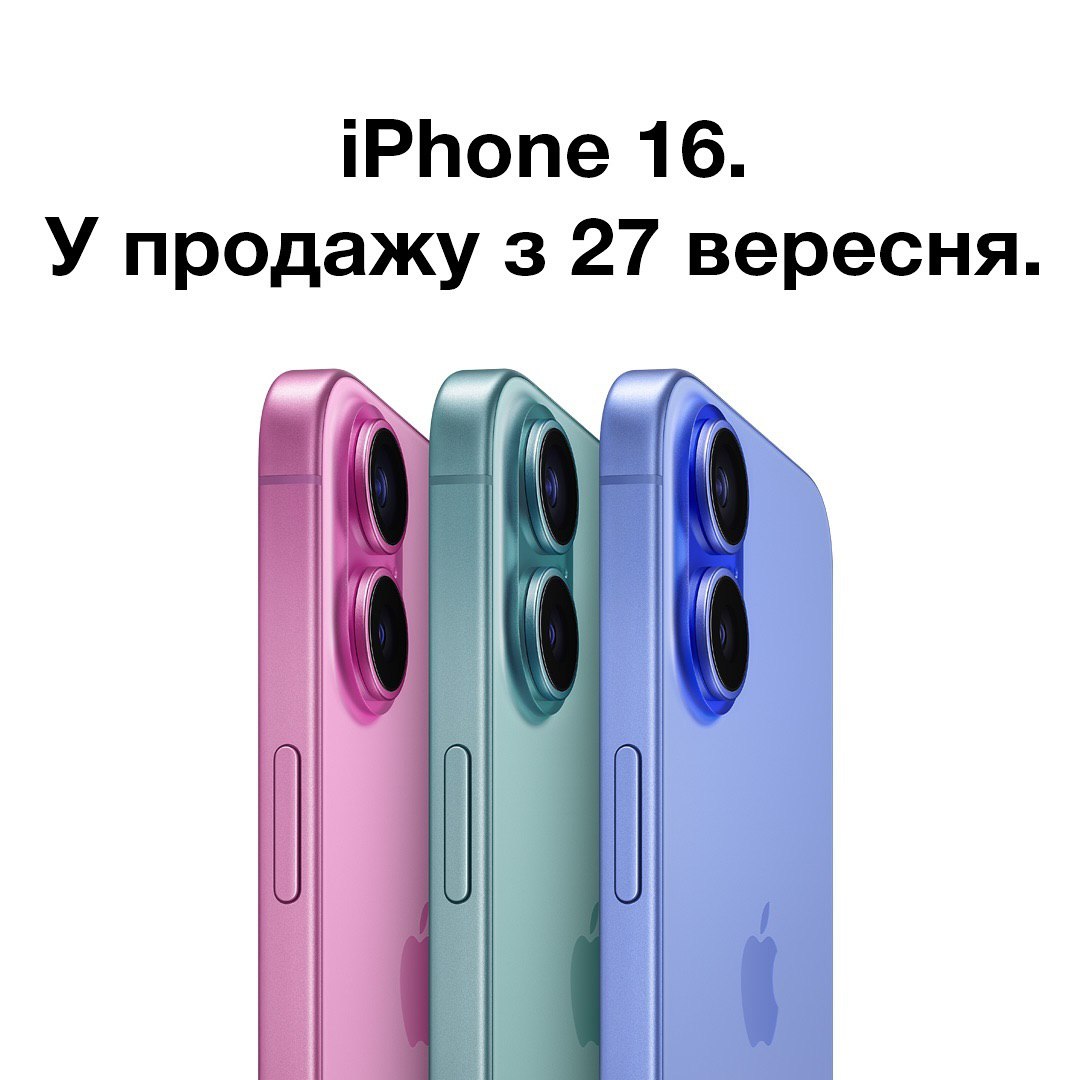 27 вересня в Україні стартує продаж нового iPhone 16, який складається з чотирьох моделей: iPhone 16, 16 Plus, 16 Pro та 16 Pro Max. У новій моделі з’явилася нова кнопка Camera Control для миттєвого управління камерою, дисплей з оновленим склом сяє яскравістю до 2000 ніт, щоб легко користуватися телефоном навіть під яскравим сонцем. Також завдяки новому процесору A18, який підтримує Apple Intelligence продуктивність iPhone 16 виросла на 40%.