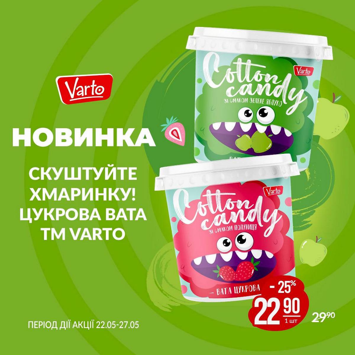 Мережа Varus, дбаючи про задоволення смаків усіх своїх покупців, продовжує розширювати асортимент власної ТМ Varto. Нині компанія пропонує солодку новинку – цукрову вату від українського виробника – компанії Візард ЛТД.