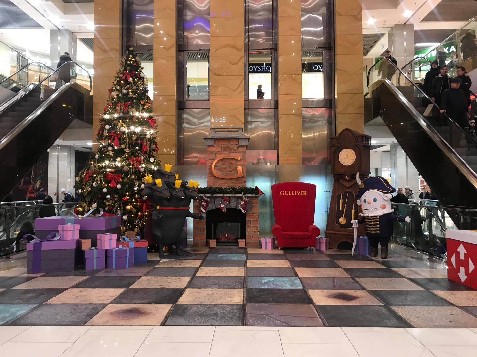 В цьому році в центральному атріумі Gulliver “ожила” класична новорічна казка про Лускунчика. Всі декорації в центральному атріумі продумані до дрібниць і на 100% відповідають за настрій свята і чаклунства. Величезна різдвяна ялинка з червоними бантами і золотистими кульками, Мишачий король, камін, старовинні годинники з маятником і сам Лускунчик. Стиль оформлення був навіяний не тільки образами казки, а й самої новорічною рекламною концепцією «Новорічна казка починається тут» в колаборації з компаніями UDC та Нова пошта.