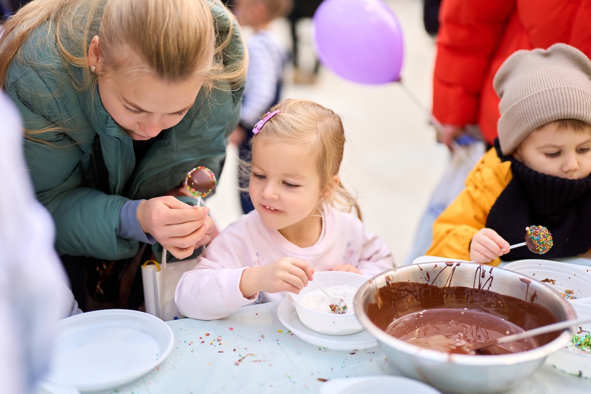 Для маленьких відвідувачів підготували майстер-класи, інтерактивні фокуси, вікторини та подарунки. Кожна дитина могла спробувати себе в ролі шеф-кухаря: створювати різноманітні солодощі, прикрашати кейкпопси або розписувати імбирні пряники.