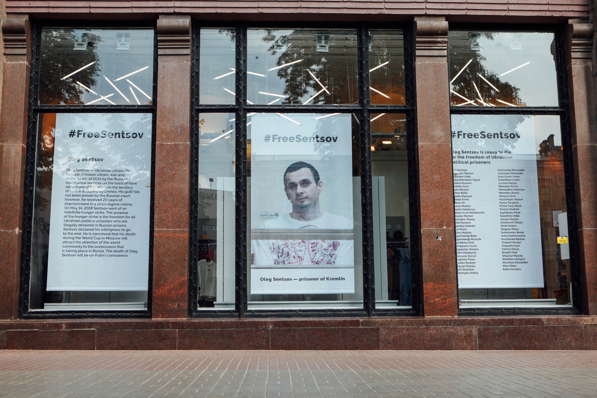 Універмаг українських брендів Всі.Свої розмістив в вітринах магазину портрет українського кінорежисера Олега Сенцова, затриманого російськими окупаційними силами в Криму в 2014 році і засудженого до 20 років колонії за сфабрикованими звинуваченнями в тероризмі. Таким чином магазин підтримав кінорежисера, який оголосив безстрокове голодування з вимогою звільнення більше 60-ти українських політв’язнів, які відбувають покарання в російських в’язницях.