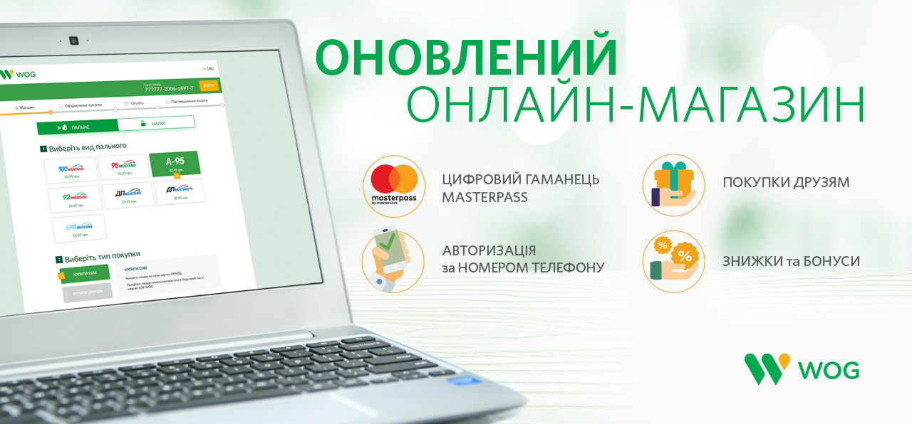 З інших нововведень – авторизація в онлайн-магазині WOG за допомогою номера мобільного телефону і вчинення платежів без повторного введення реквізитів банківської карти – на основі сервісу MasterPass від MasterCard. До того ж, за допомогою MasterPass можна заправлятися, не виходячи з автомобіля, скориставшись сервісом WOG PAY в додатку WOG PRIDE.