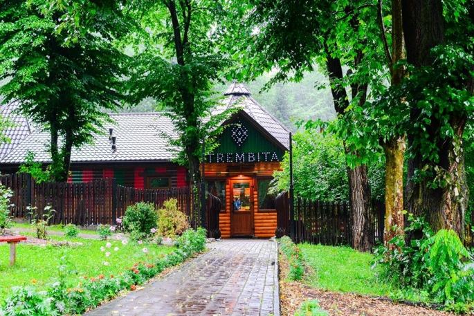 Якірні позиції Trembita – м’ясо: стейки, шашлику та люля-кебаб. Понад півсотні років на цьому місці знаходився ресторан української кухні «Колиба», популярний серед відпочиваючих завдяки м’ясним стравам. Також присутні рибні страви – карпатська форель, смажений короп, стейк з лосося.