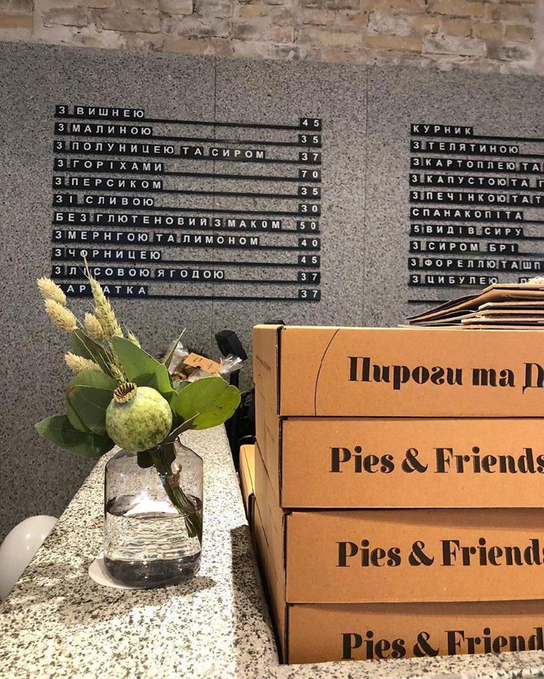 У Києві на вул. Пушкінська, 20А відкрилося кафе Пироги та Друзі. У меню-солоні пироги з телятиною, сирами, картоплею і грибами, печінкою і томатами, капустою і грибами. Серед солодких-пироги з яблуками, персиком, чорницею, горіхами, малиною і сиром.