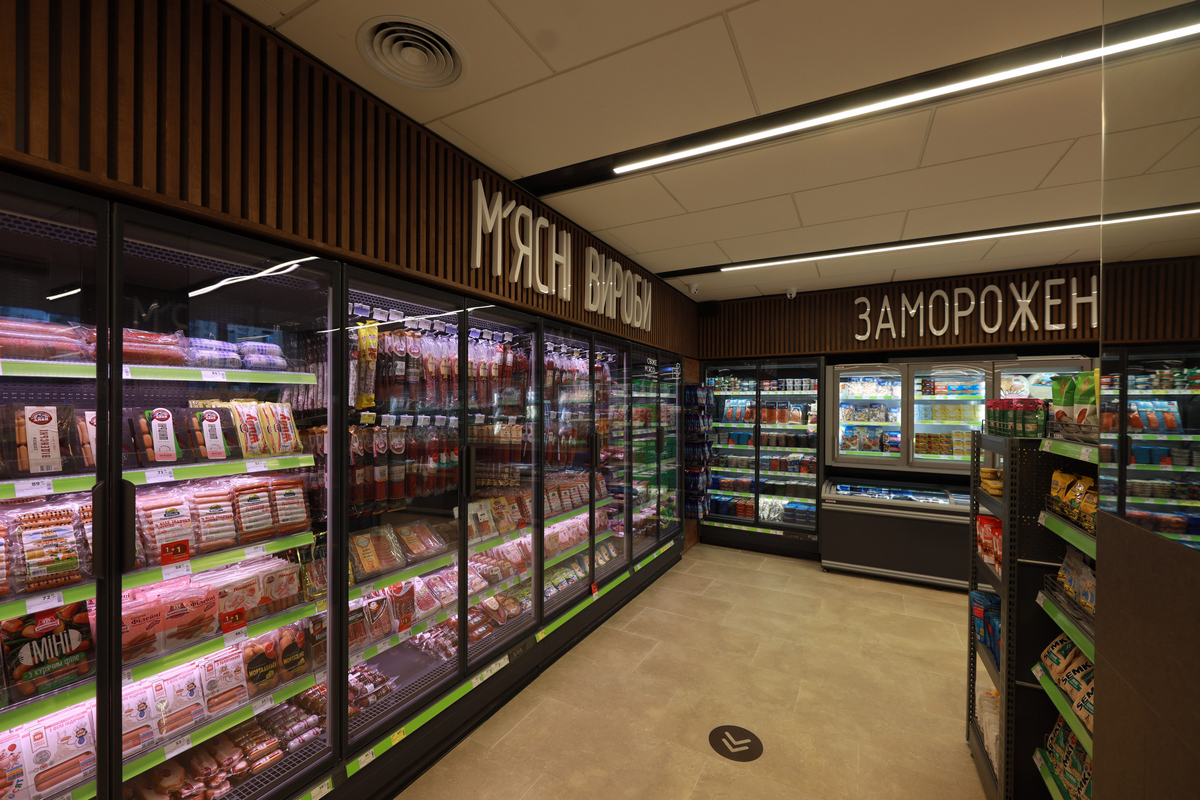 Площа цього магазину складає 1350 кв. м. Для зручності відвідувачів тут встановлено 14 кас, сім з яких – лінійні, шість – каси самообслуговування й одна інфокаса, яка обладнана кавомашиною для швидкого придбання кавових напоїв.