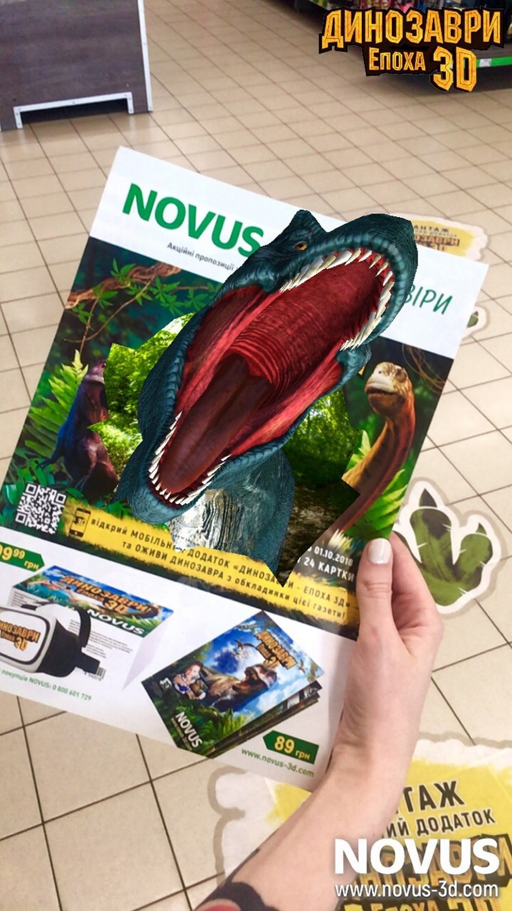 Марія: Хотілося, щоб ідея була жива, привертала та залучала, щоб була взаємодія між покупцем і акцією. І ми вгадали: з 3D-динозаврами охоче розважаються діти, підлітки, дорослі, рівень залученості дуже великий. Доповнена реальність – порівняно маловідома технологія для українців, тому нам хотілося зробити її загальнодоступною, познайомити споживачів з інноваціями.