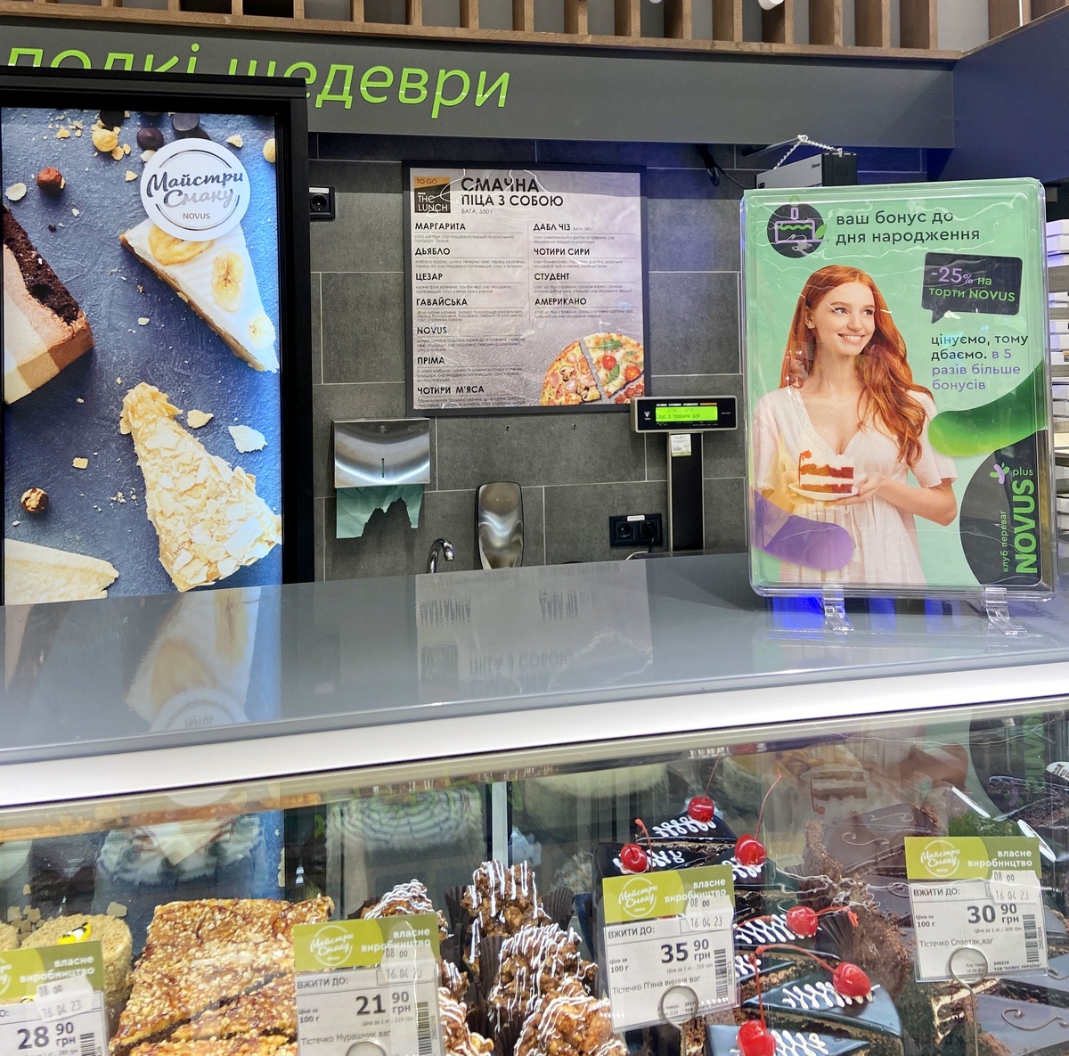 У супермаркеті можна знайти все необхідне для столу: свіжі овочі та фрукти, ароматну випічку, відбірний імпорт та продукти власного виробництва від Майстрів Смаку, серед яких, зокрема, свіжоспечена піца, яку у Novus готують за італійською рецептурою на тісті з оливковою олією.