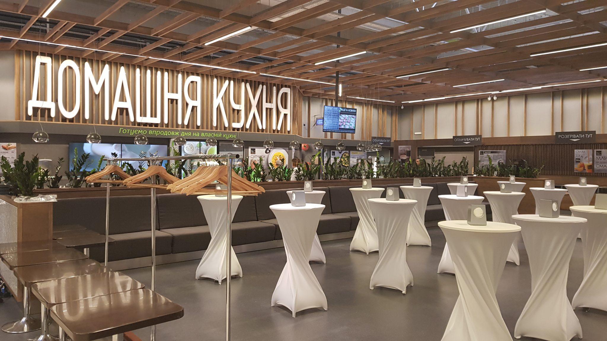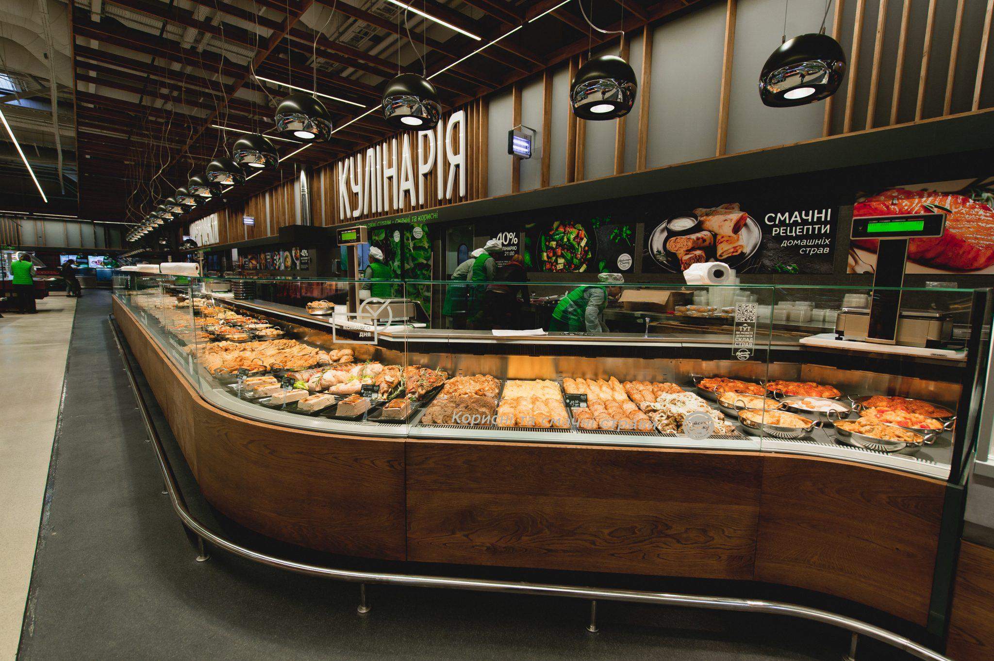 В новому форматі працює пивбар і кафе з великою сімейної зоною відпочинку під брендом The Lunch. У його меню покупці зможуть знайти бургери, млинчики, каву та піцу, приготовану в традиційній італійській печі, яка розташована безпосередньо в магазині. В цілому, в фуд-зоні обладнано понад 150 посадкових місць.
