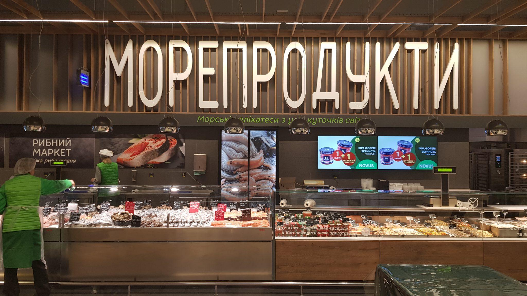 Ще одна “фішка” магазину – медійні екрани, які представлені в мережі Novus вперше. Для них були спеціально зняті відеосюжети, які відрізняються в залежності від зони. Передбачається, що вони будуть перебиватися рекламою, анонсами акцій тощо.