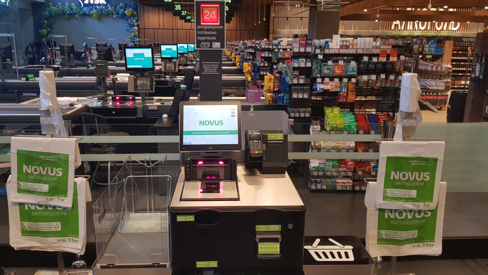 Вже традиційно для нових магазинів, крім звичайних кас в супермаркеті працюють термінали самообслуговування, на яких можна розплатитися як картою, так і готівкою. До речі, з 2017 року Novus інвестував вже 40 млн грн в каси самообслуговування, а до кінця 2019-го в мережі працюватиме вже більше 100 self-service терміналів в 21 магазині.