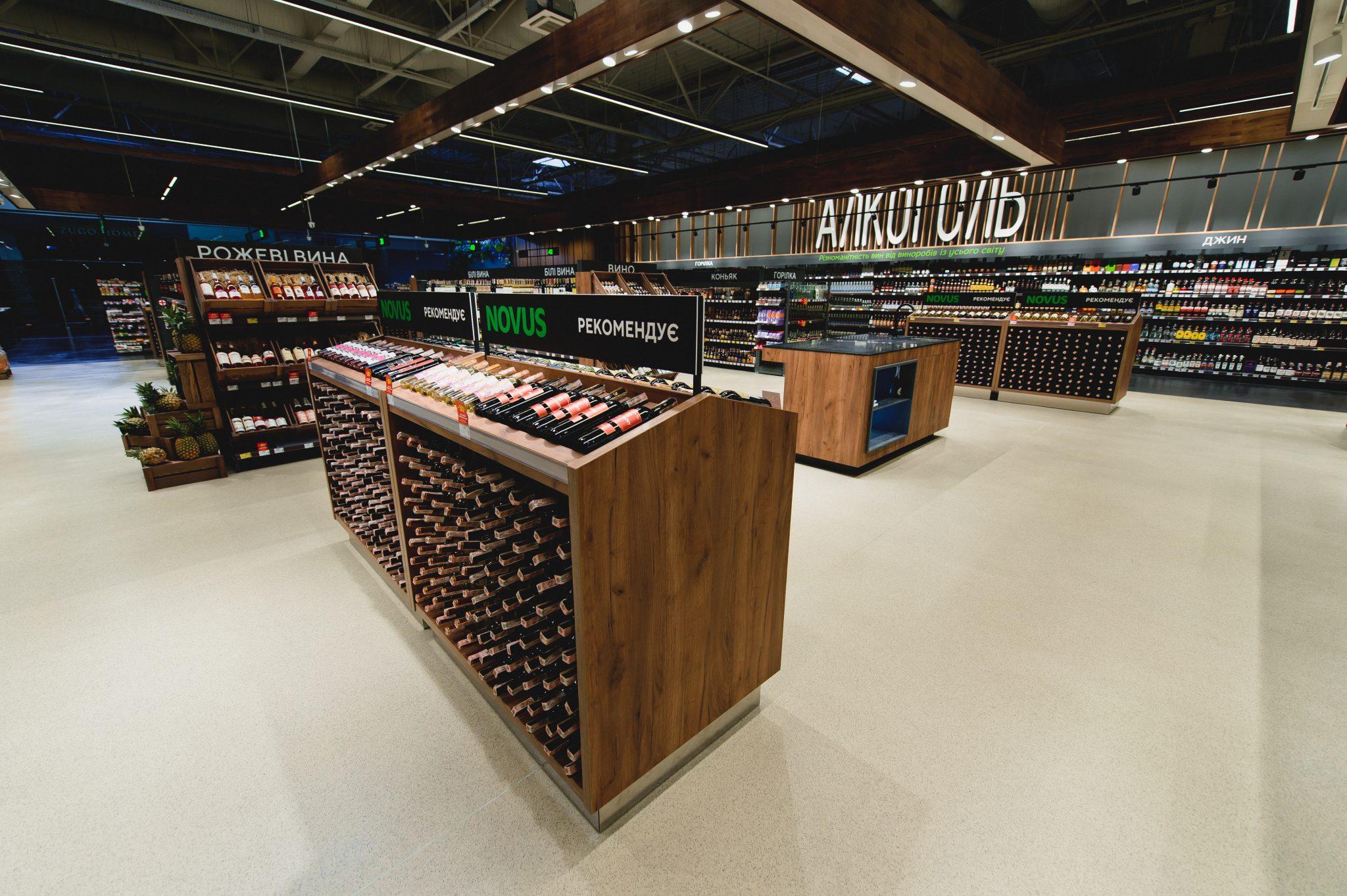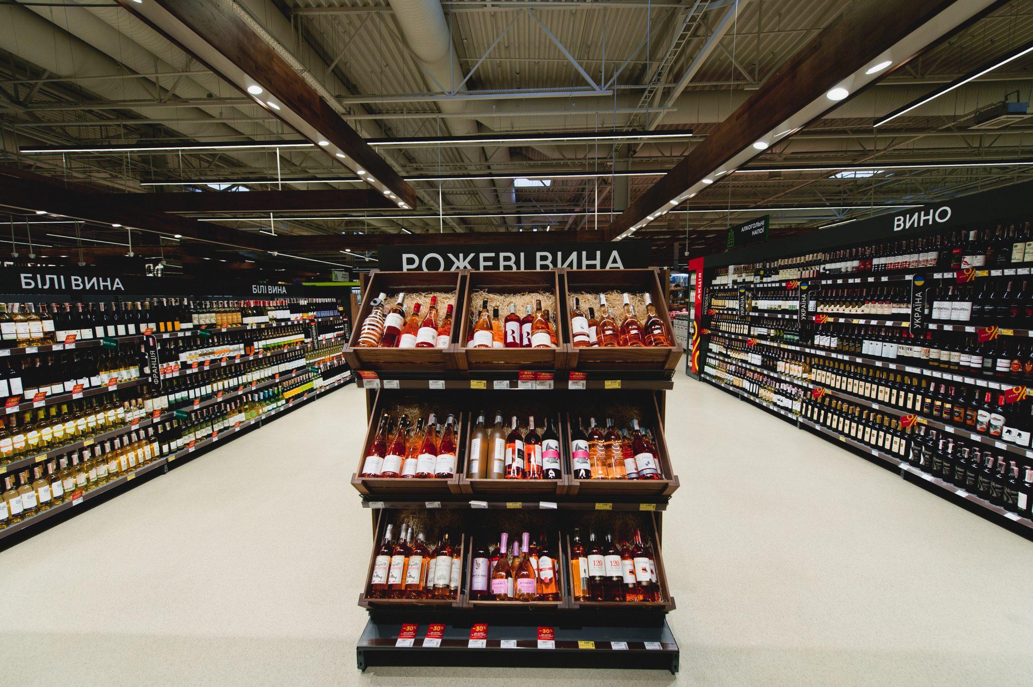 У новому форматі також реалізовано винний відділ супермаркету, в якому представлено понад 1300 позицій вина з 20 країн світу, в тому числі – продукція власного імпорту. Всередині зони обладнані холодильники з охолодженою продукцією, а також дегустаційний стіл, де кожен день працюватиме професійний сомельє.