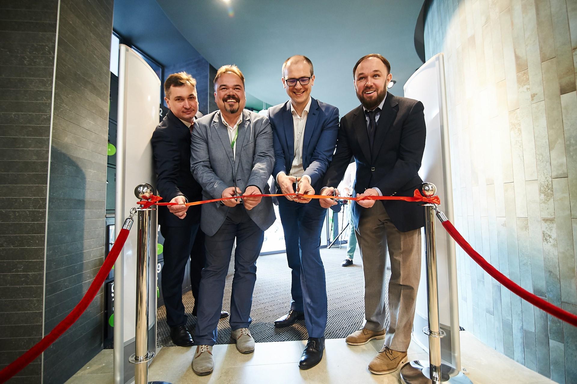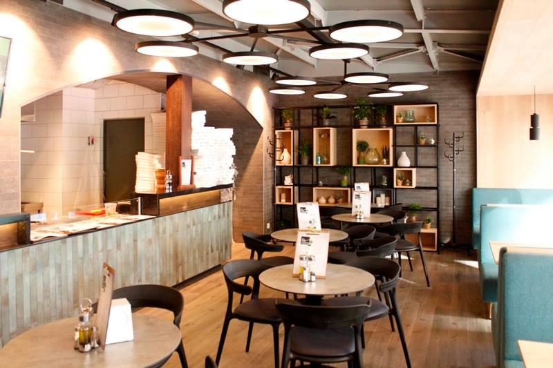 В інтер’єрі переважає натуральне дерево і акриловий камінь. Нові рішення також були реалізовані в дизайні стель і освітленні магазину.