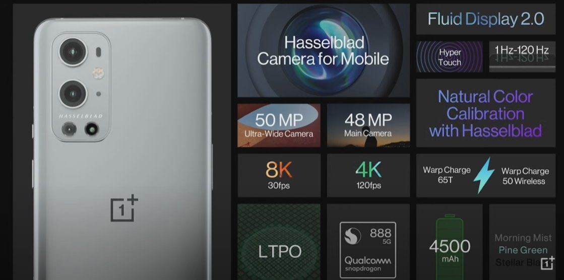 У OnePlus 9 Pro також оновилася система камер. Вона включає як апаратні, так і програмні поліпшення, в тому числі нове колірне рішення під назвою Natural Color Calibration з Hasselblad і Hasselblad Pro Mode.