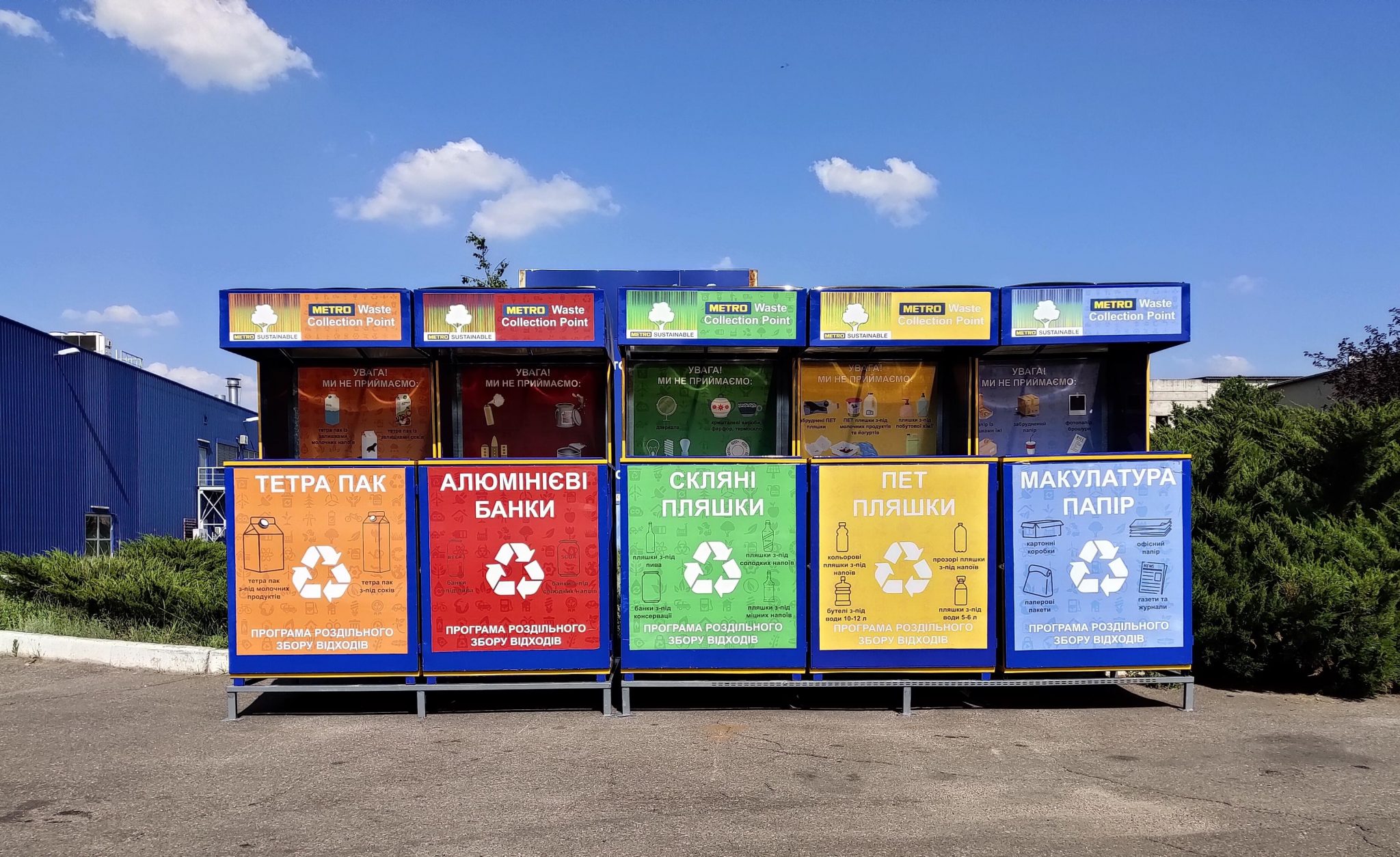Розширила свою програму з роздільного збору відходів і мережа магазинів Metro. У липні компанія відкрила три нові пункти роздільного збору вторинної сировини у Полтаві, Миколаєві та Львові. Таким чином, роздільний збір відходів для клієнтів Metro відтепер діє у Києві, Харкові, Полтаві, Маріуполі, Миколаєві та Львові – загалом у 10-ти торговельних центрах. Варто зауважити, що окрім сервісу з роздільного збору вторинної сировини для клієнтів, у всіх торговельних центрах Metro діє роздільний збір власних відходів. У кожному магазині встановлено як мінімум по 5 контейнерів для роздільного збору металу, макулатури, ПЕТ пляшки, скла та полімерів.